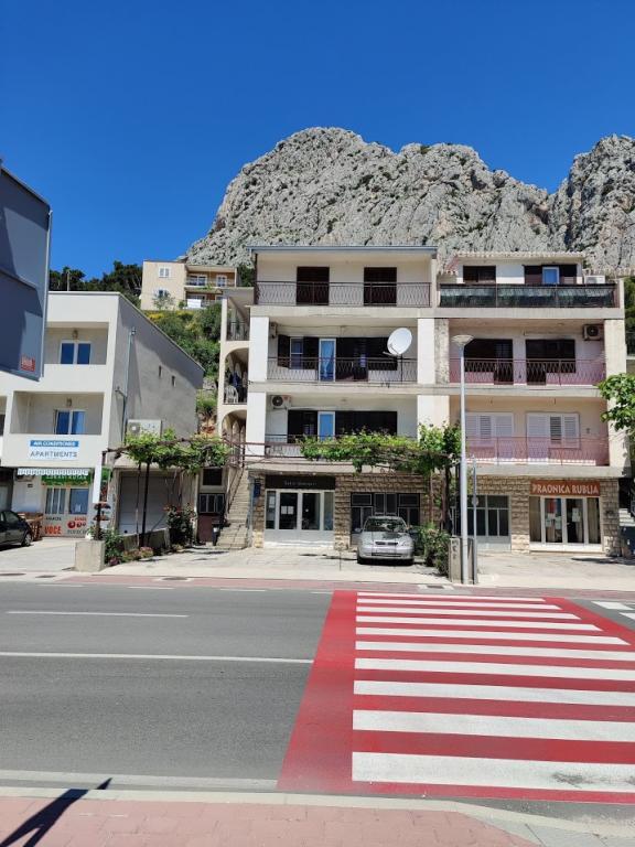 Das Haus befindet sich am Eingang von Omis von Split entfernt. Gegenüber dem Haus in einem Einkaufszentrum STUDENAC befindet, bietet Auto Camp Möwe zahlreiche Sport-und Freizeiteinrichtungen, und Dino-Parks und Freizeitpark für kleine und große. Der Strand ist 200 m entfernt und das Zentrum von Omis 800m (10 Minuten Fußweg).