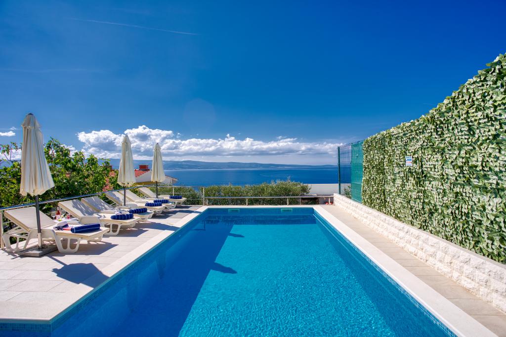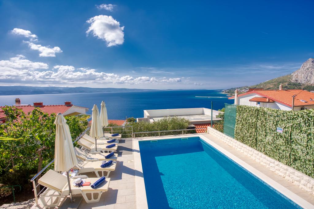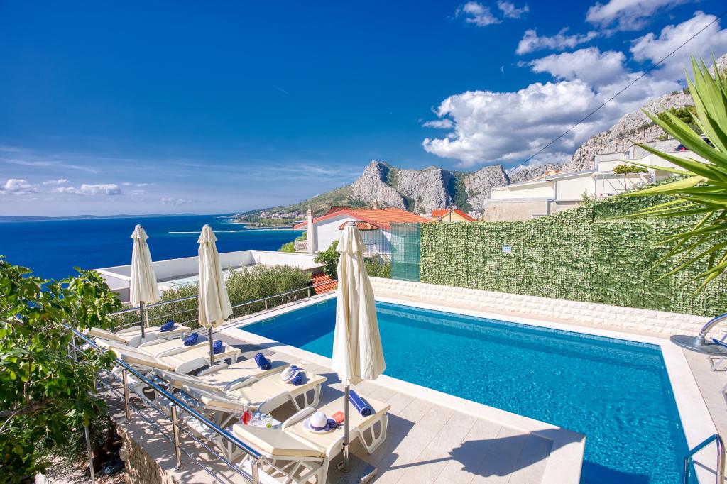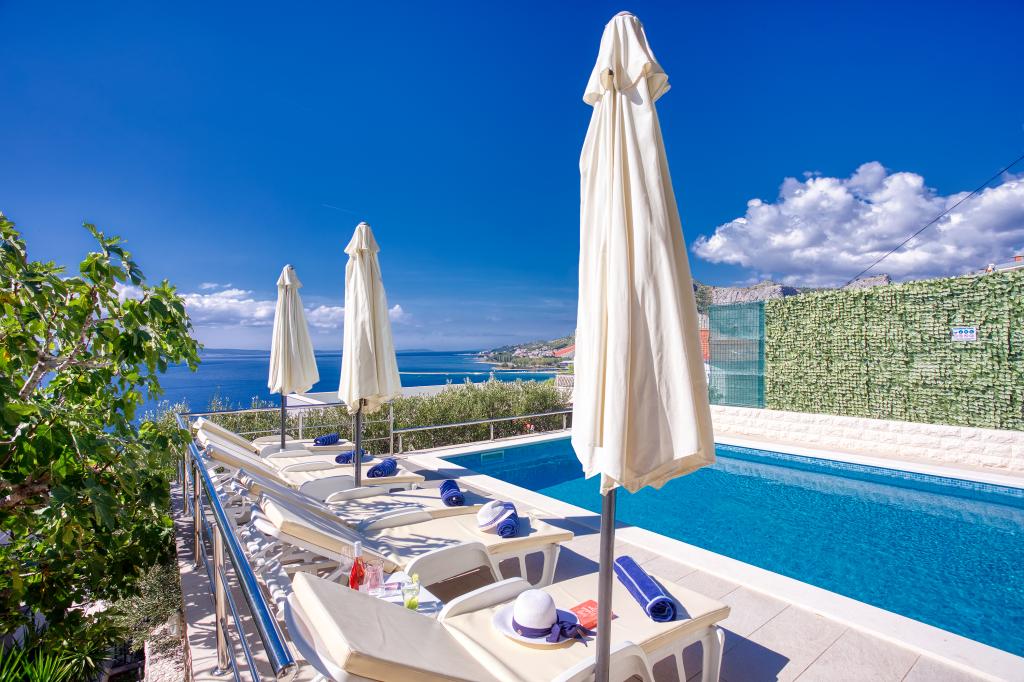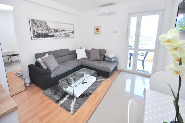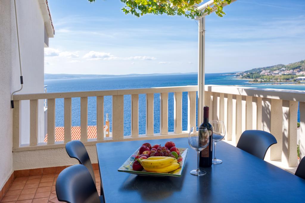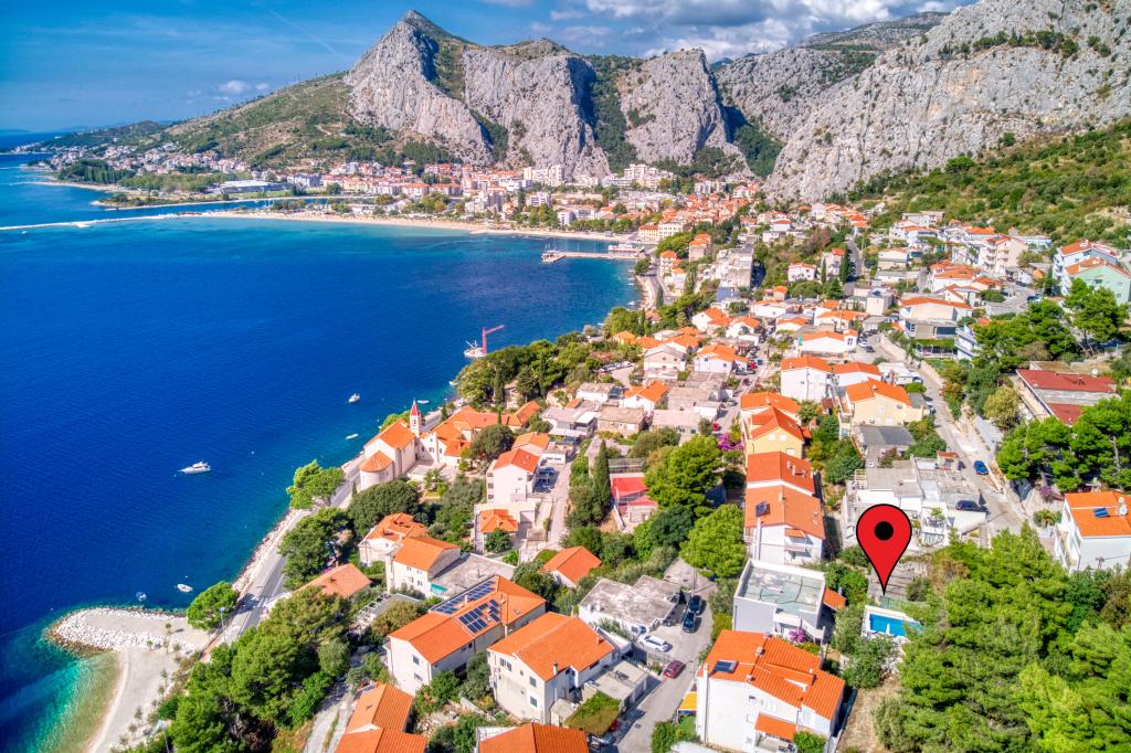 modernen Apartments in einer ruhigen Gegend von Omis von mediterraner Vegetation mit Blick auf das Meer.