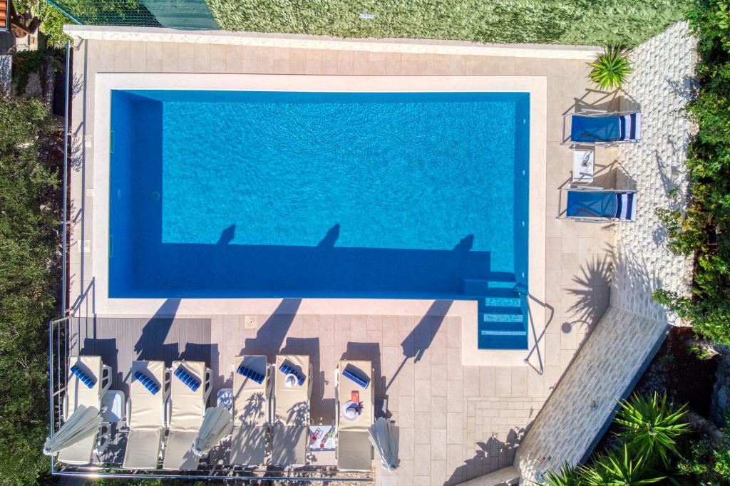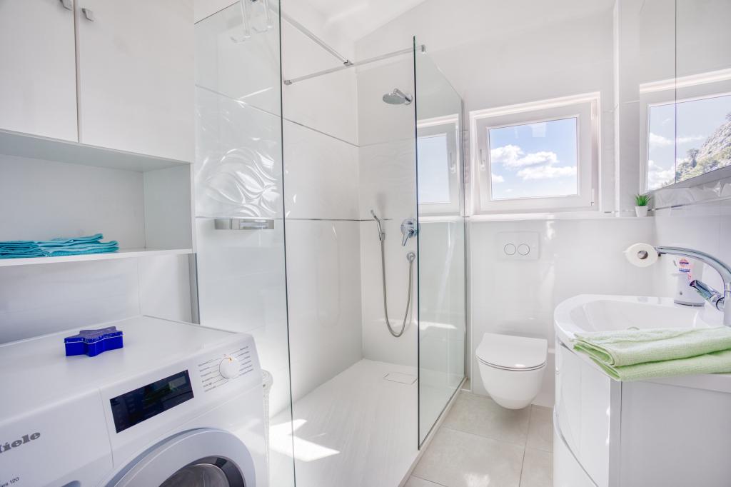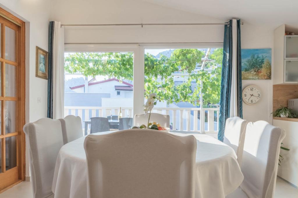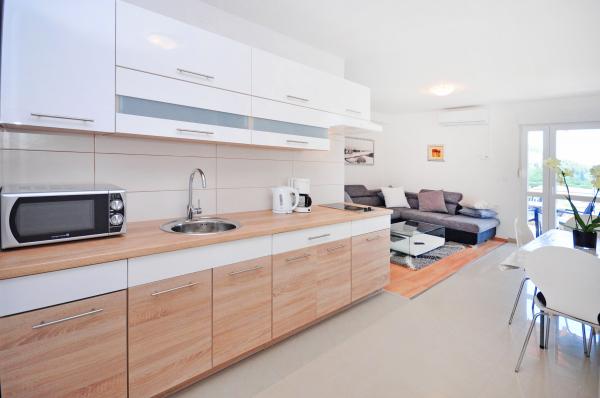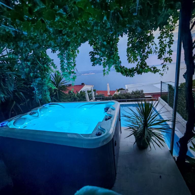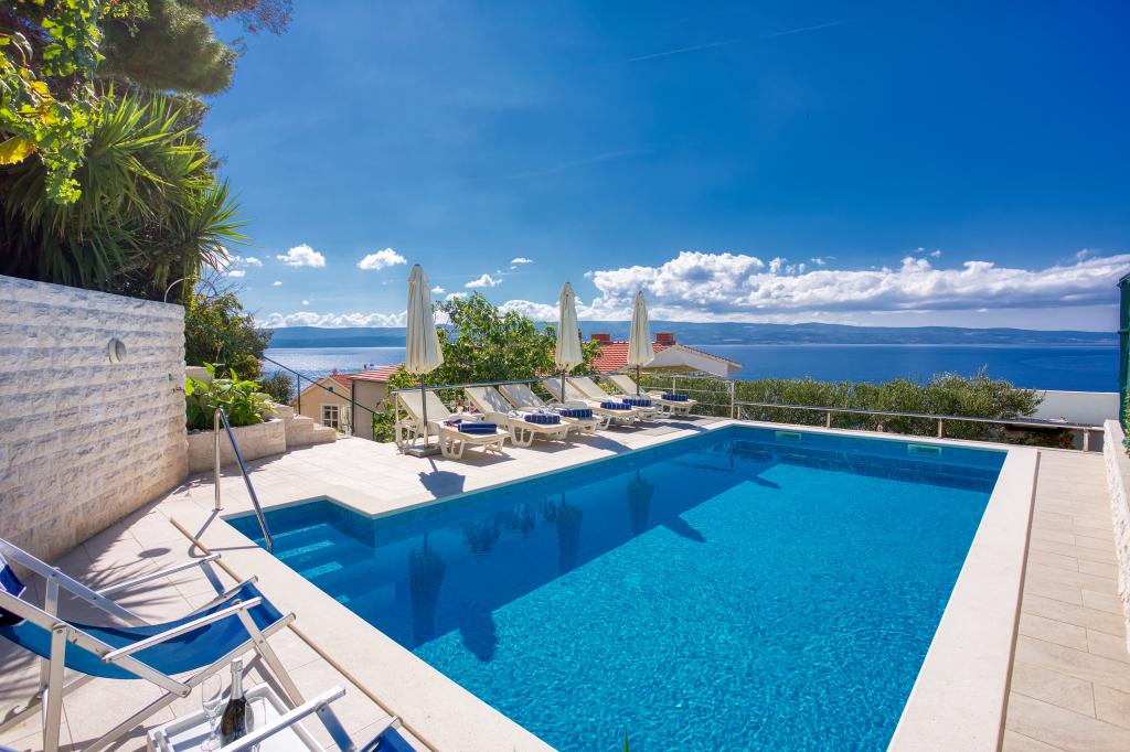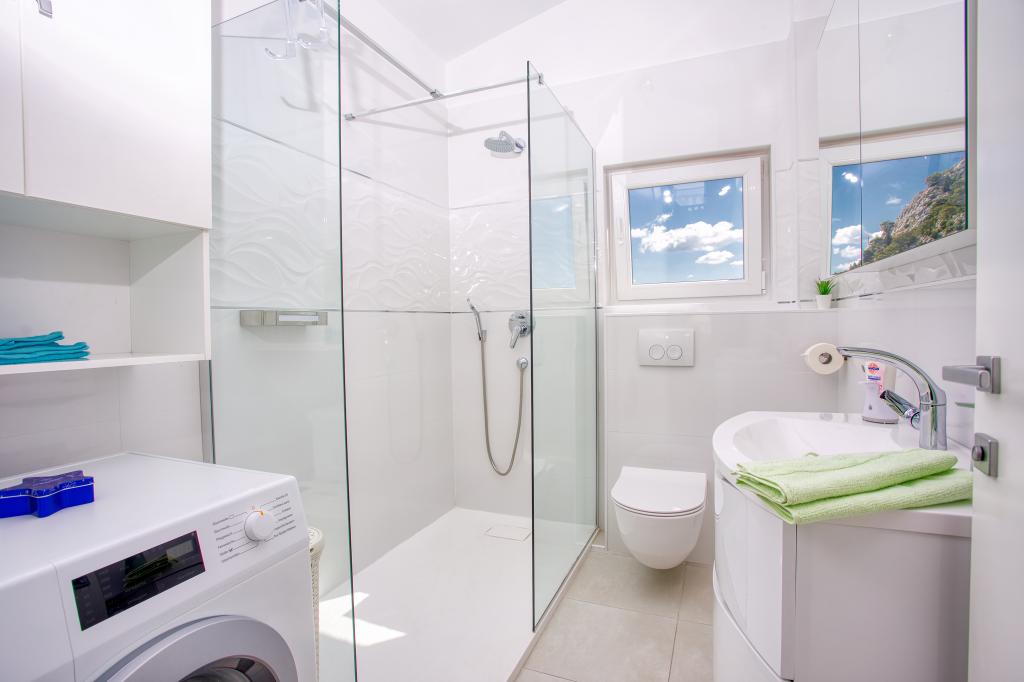 modernen Apartments in einer ruhigen Gegend von Omis von mediterraner Vegetation mit Blick auf das Meer.