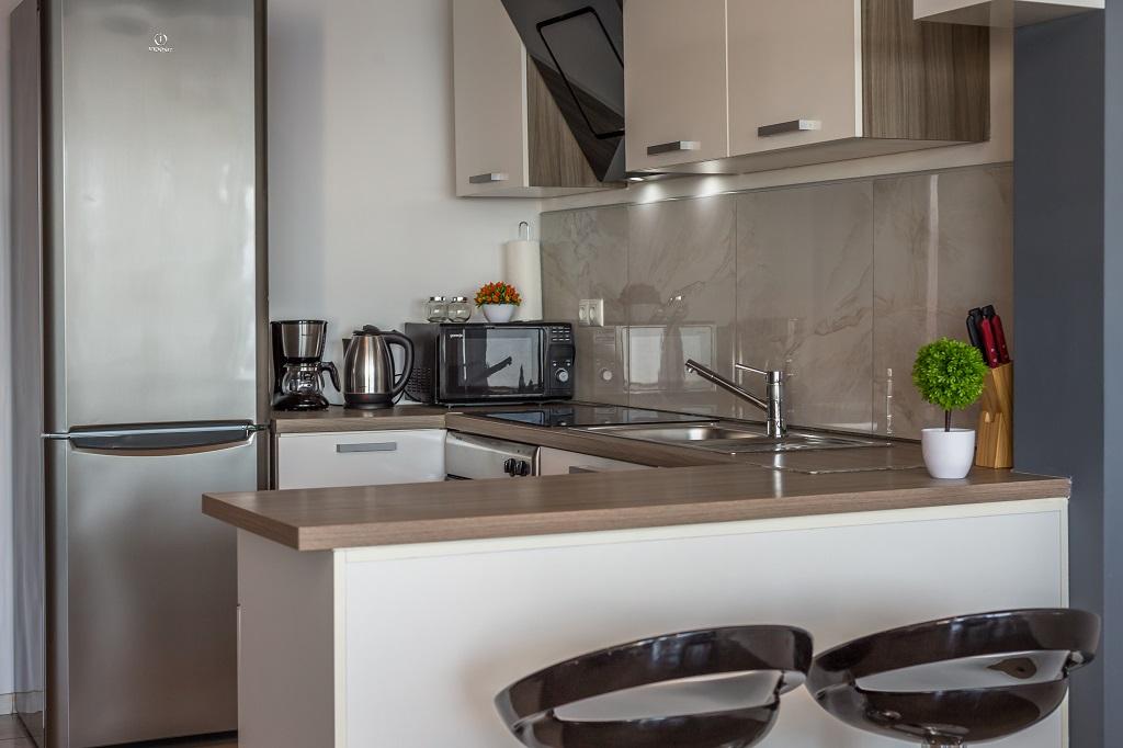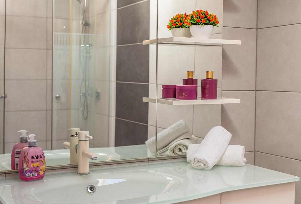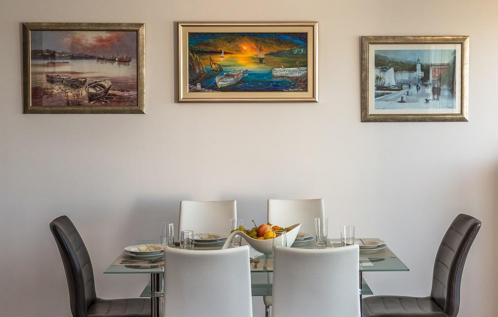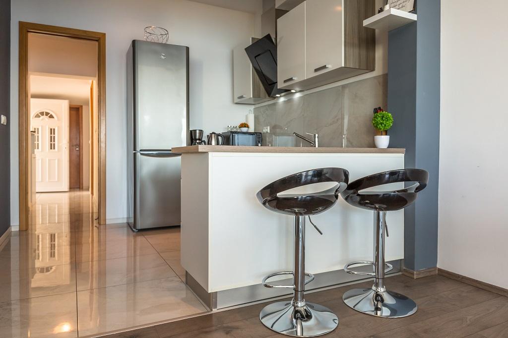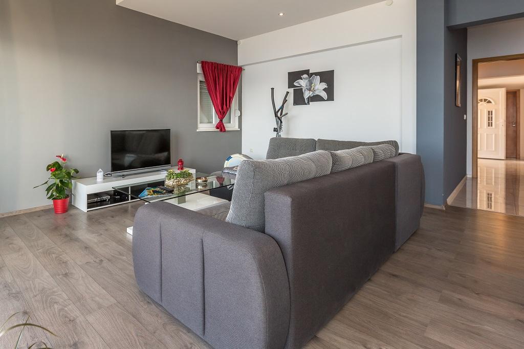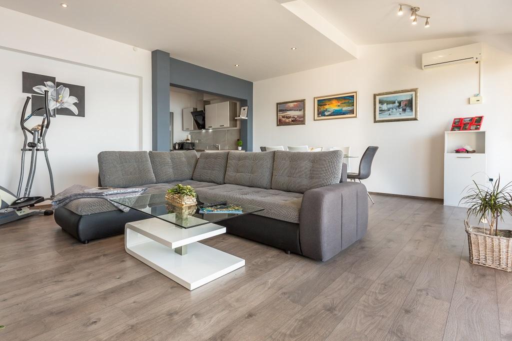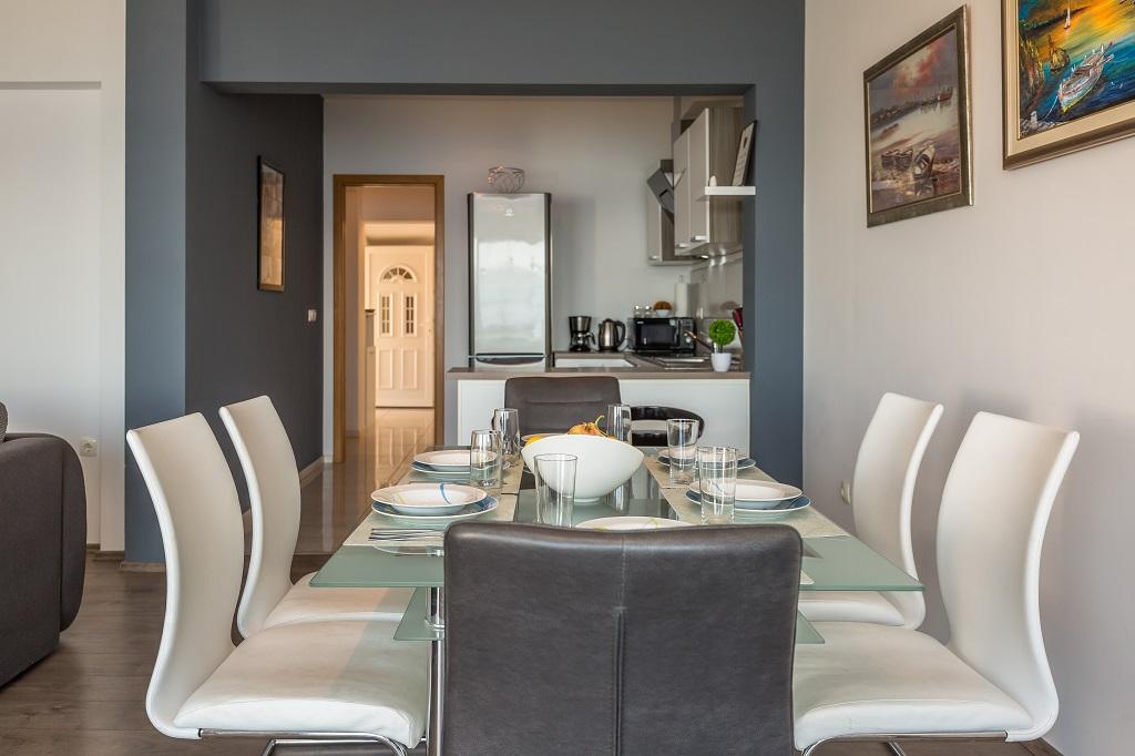 NEUE UND MODERNE WOHNUNG. Die Wohnung befindet sich in einem privaten Familienhaus mit Blick auf das Meer, die Inseln und die örtlichen Strände. In der Nähe des Zentrums von Omiš, nur 500 m entfernt. Alles ist ganz neu. Die Wohnung hat 95 m2. Es verfügt über 3 Schlafzimmer, ein Wohnzimmer, eine Küche mit Esszimmer, eine Toilette und ein zusätzliches Badezimmer, einen Balkon und einen Parkplatz in der Garage. Schlafzimmer: Ein Zimmer hat ein großes Bett (180 x 190) für 2 Personen. Das zweite Zimmer hat ein französisches Bett (160 x 190) für 2 Personen. Das dritte Zimmer hat ein Einzelbett (90 x 190) für 1 Person. Badezimmer mit Waschbecken und Dusche. WC mit Waschbecken und Waschmaschine. Die Küche ist komplett ausgestattet. Das Wohnzimmer ist geräumig. Großer Balkon mit Sitzgelegenheit.