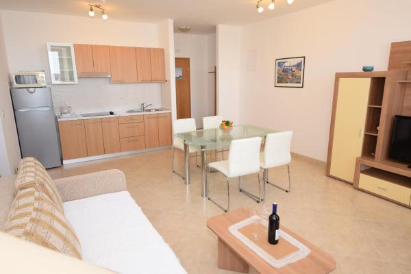Beide Wohnungen befinden sich in unmittelbarer Nähe zum Meer, der Strand ist nur 20 Meter entfernt, direkt am Meer, große Terrasse mit Liegestühlen, Blick auf den Kanal. Ganz in der Nähe zu den Restaurants und das Stadtzentrum. Beide Wohnungen haben ihre Tische auf dem Balkon.