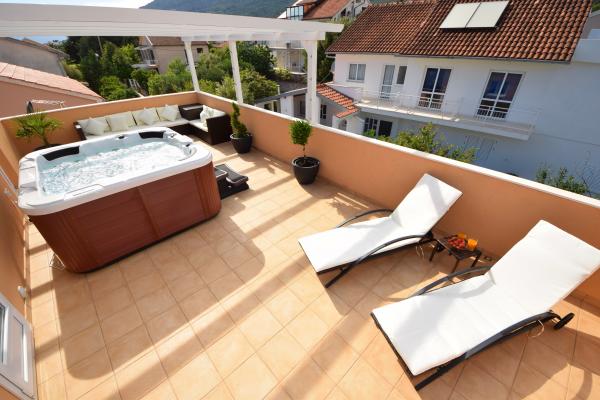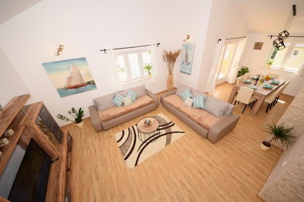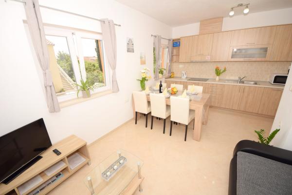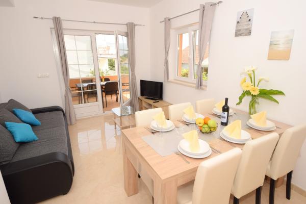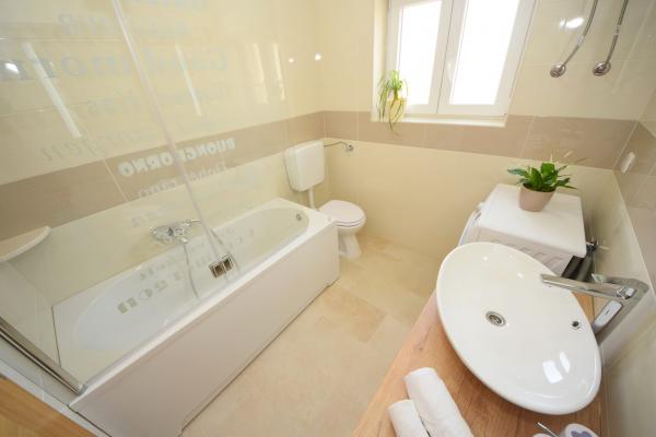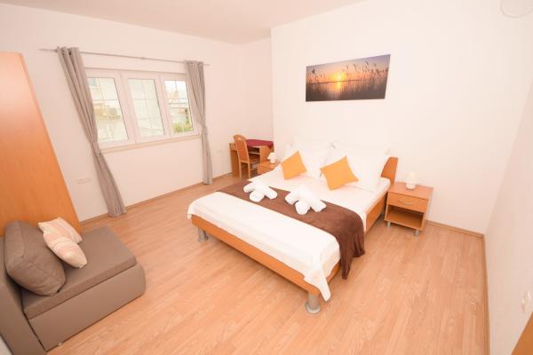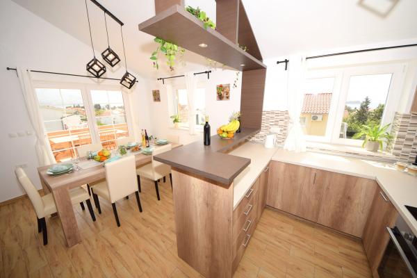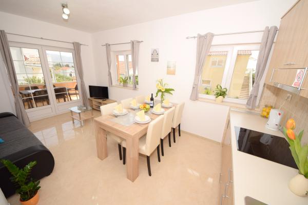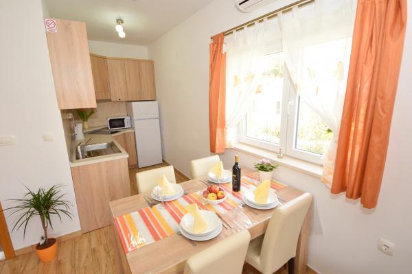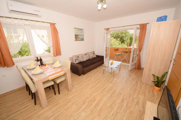 Mehr lesen UnterkunftseinheitenSenden Sie alle Anfragen an E-Mail oder Handy. Die Reservierung erfolgt mit einer Anzahlung von 25 % des Gesamtpreises der Unterkunft. Die Bezahlung der Unterkunft erfolgt am ersten Tag nach der Ankunft des Gastes. Ankunftszeit ab 14:00 Uhr, Abfahrtszeit bis 10:00 Uhr. Wir bieten Unterkunft für mindestens 5 Nächte an. Bei Wohnung A2 (2 plus 2) - zur Terrasse gehört ein Balkon mit schöner Aussicht auf die Berge, und der Meerblick ist vorhanden, wird aber durch das Nachbarhaus begrenzt.