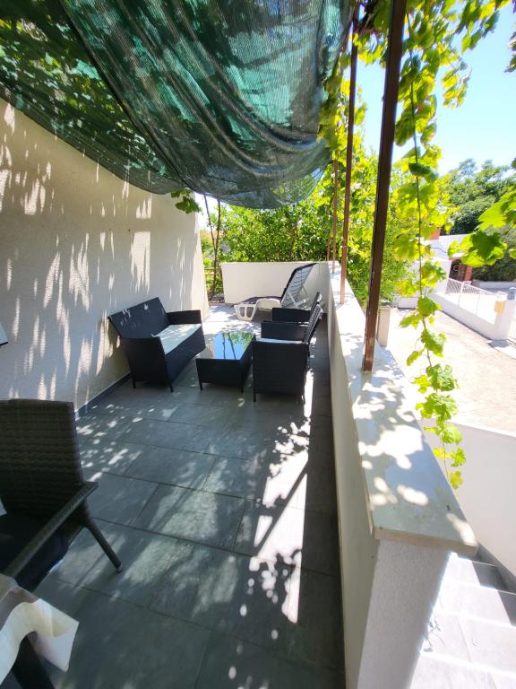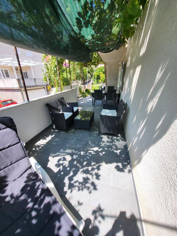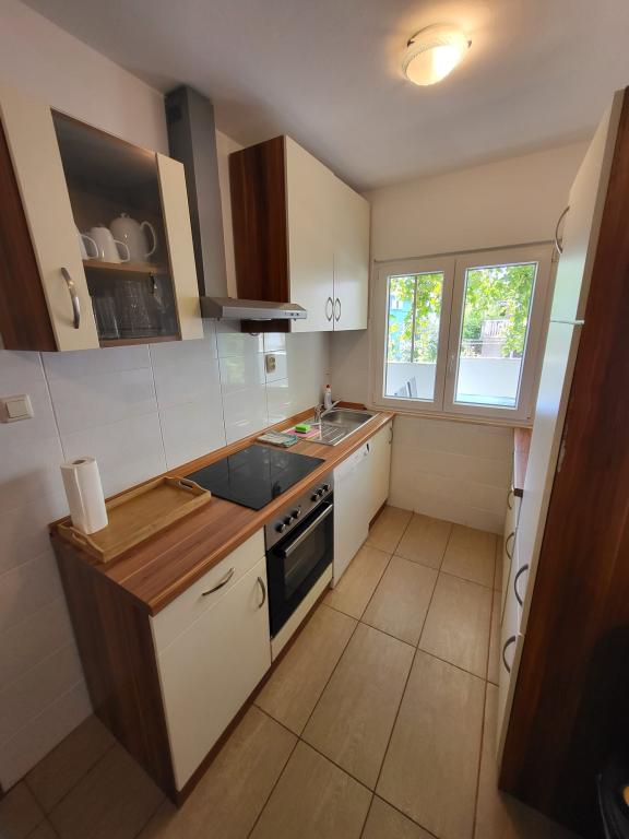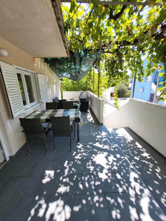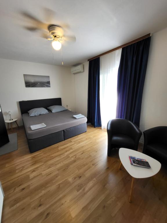 Wir befinden uns im Herzen von Orebić, alle wichtigen Einrichtungen sind bequem zu Fuß erreichbar. Der Strand ist nur wenige Gehminuten entfernt. In 50 Metern Entfernung finden Sie ein Geschäft, eine Bäckerei, eine Apotheke, ein Café und einen Schnellimbiss. Weitere Restaurants und Freizeitmöglichkeiten befinden sich ebenfalls in der Nähe. Diese Unterkunft mit Garten bietet klimatisierte Zimmer mit Balkon, Terrasse und Meerblick. Zur Ausstattung gehören kostenfreie Parkplätze, Klimaanlage, Sat-TV und WLAN. Die voll ausgestattete Küche lässt keine Wünsche offen. Das Haus liegt in einer ruhigen Straße mit Blick auf das Meer, den Garten und die Straße. Apartment AP1 (ID: 71816): Das Apartment ist 61 m² groß + Terrasse 16 m² + Balkon 7 m². Es verfügt über ein Badezimmer, 2 Schlafzimmer, ein Esszimmer und eine Küche. Apartment AP2 (ID: 71815): Das Apartment ist 61 m² groß + Terrasse 4 m² + Balkon 7 m². Terrasse und Balkon sind mit Markisen beschattet und mit Gartenmöbeln ausgestattet. Die Wohnung verfügt über ein Badezimmer, zwei Schlafzimmer, ein Esszimmer und eine Küche.