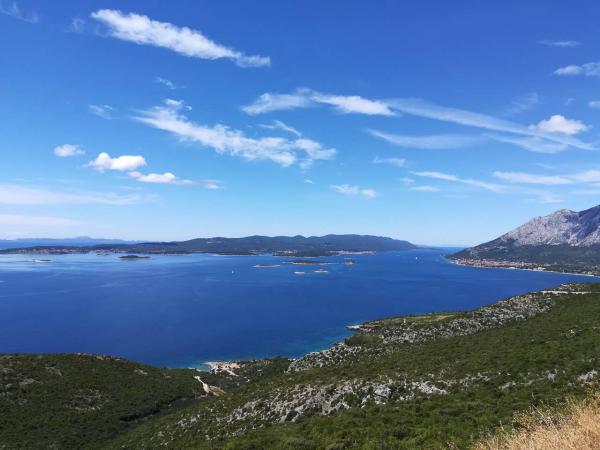 Voll ausgestattete Apartments im ruhigen Teil von Orebic, ideal für Menschen, die Ruhe und Privatsphäre suchen. Der geräumige Garten bietet ein sicheres Spiel für Ihre Kinder und Haustiere. Der lange und breite Kieselstrand, einer der schönsten an der Adria, ist nur wenige Gehminuten von der Unterkunft entfernt. Das Objekt liegt direkt am Meer und bietet einen außergewöhnlichen Blick auf Korčula, Mljet und 18 kleine Inseln am Peljesac-Kanal.