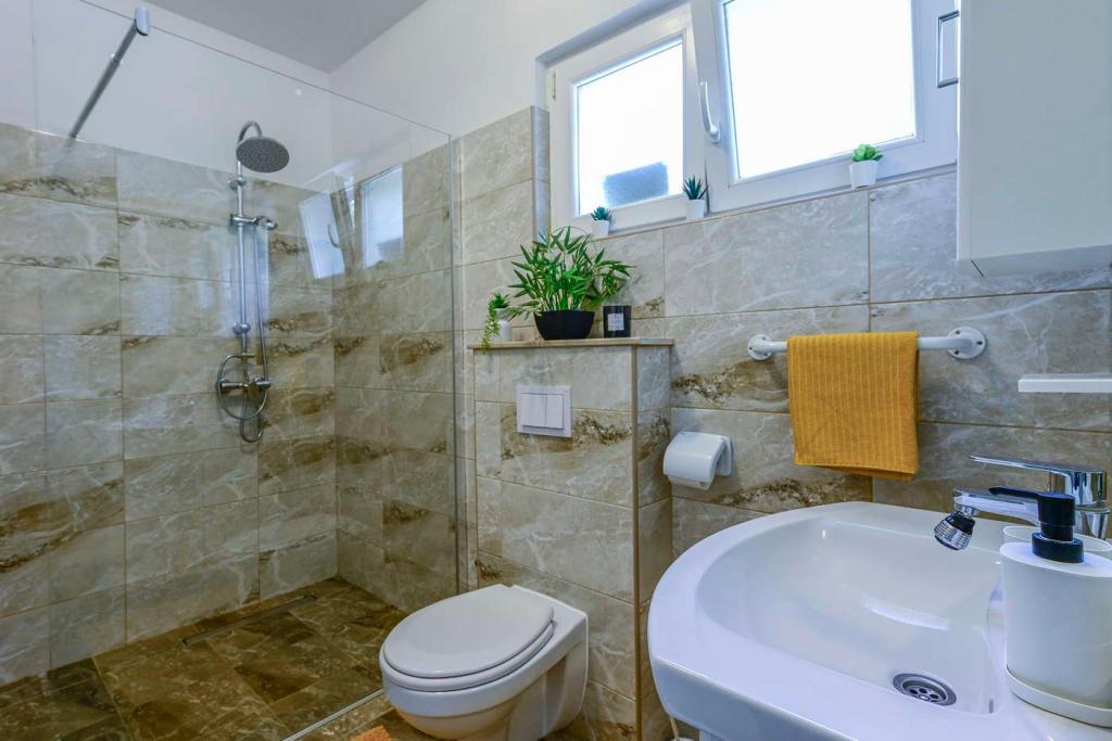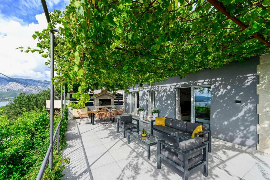 Das neu renovierte Haus Noa befindet sich in ruhiger Lage in Postup und bietet einen wunderschönen Blick auf die Adria, die Inseln und die Weinberge. Dieses perfekte Refugium verfügt über eine große Terrasse mit Grill, auf der Sie entspannte Tage verbringen können. Es hat zwei Schlafzimmer mit je einem Doppelbett und einem Smart-TV. Kostenloses WLAN ist auf dem Grundstück verfügbar. Es gibt auch einen Parkplatz für Autos. Wir sind immer für alle Bedürfnisse unserer Gäste erreichbar. Postup ist ein ruhiges Dorf mit einer wunderschönen Aussicht auf Korčula, Mljet und Lastovo. Es gibt viele kleine Dörfer in der Nähe von Postup, die Sie erkunden und genießen können. Orebić, der Hauptort, ist 10 Autominuten (6 km) entfernt. Hier finden Sie zahlreiche gute Restaurants, die frische Produkte von freundlichen Bauern und natürlich den Fischern des Ortes servieren. Hier gibt es viele private und ruhige Strände, die inmitten der Wälder direkt am Meer liegen. Perfekt zum Genießen! Postup ist die Heimat des berühmten gleichnamigen Rotweins. Der Wein von Pelješac gilt als einer der besten in Kroatien. Sie können viele lokale Weingüter auf der ganzen Halbinsel besuchen. Mögliche Tagesausflüge: die Inseln Korčula und Mljet, ein Spaziergang entlang der längsten Mauer Europas in Ston, ein Besuch in Dubrovnik oder Medjugorje. Für Abenteuerlustige gibt es Aktivitäten wie Wandern, Radfahren und Windsurfen. Das Personal spricht: Englisch, Kroatisch