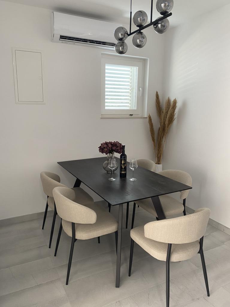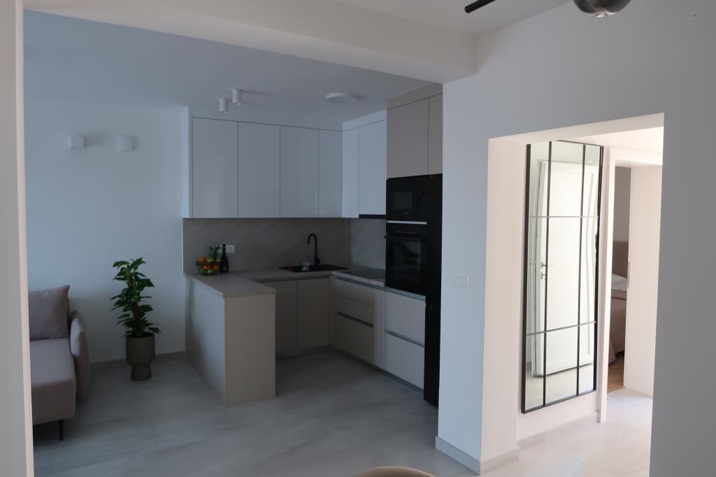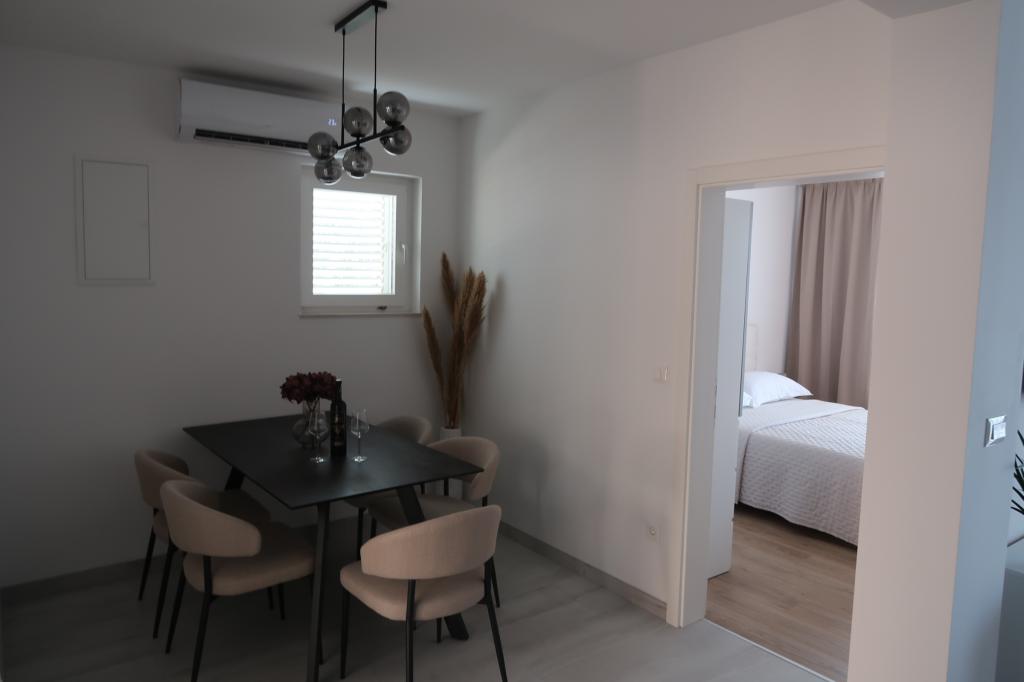 Voll ausgestattete und neu renovierte Wohnung. Es liegt 2 Gehminuten vom Strand und 5 Gehminuten vom Zentrum entfernt. Das erste Geschäft befindet sich 30 m vom Grundstück entfernt. Im Zentrum gibt es ein Restaurant, ein Café, einen Fischmarkt, einen Markt, eine Bank, eine Bäckerei usw. Zur Unterkunft gehören kostenlose Parkplätze und WLAN. Im Gebäude befindet sich eine Feuerstelle, an der gegrillt werden kann. Zur Wohnung gehören 2 Terrassen, eine vor der Haustür mit zwei Sesseln zum Entspannen, die andere auf der Südseite mit Meerblick.