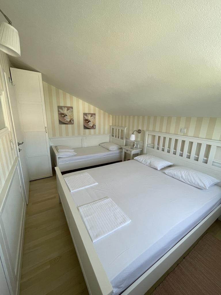 Verbringen Sie Ihren Urlaub in unserem Apartment im Vintage-Stil auf der Halbinsel Pelješac, in der malerischen Kleinstadt Orebić, gegenüber der Insel Korčula, die nur 13 Minuten mit dem Fußgängerboot entfernt ist. 2018 haben wir die Wohnung übernommen und komplett renoviert und mit neuen Möbeln eingerichtet. Die Wohnung ist 41 qm groß und ist für 2 Erwachsene und 2 Kinder oder 4 Erwachsene gedacht und befindet sich im zweiten Stock. Direkt vom Wohnzimmer aus gelangen Sie auf den voll möblierten Süd-Ost-Balkon, wo Sie bei einer Tasse Kaffee die aufgehende Sonne genießen oder am Nachmittag bei einer leichten Brise ein Buch lesen können. Das Highlight des Balkons ist der Blick auf das Meer und die kleinen Inseln in unmittelbarer Nähe. Der Strand ist sehr nah ca. 80 m. Im gesamten Gebäude befinden sich 14 Eigentumswohnungen, von denen nur vier vermietet werden, zwei im Untergeschoss und zwei im zweiten Stock!