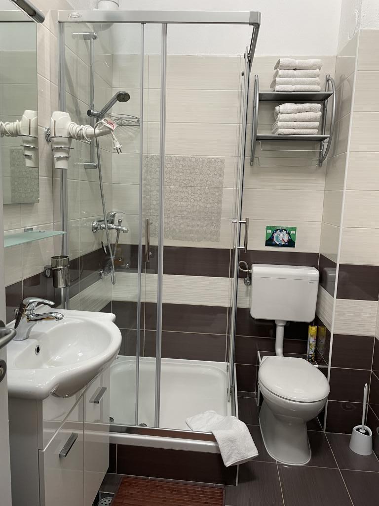 Die Wohnung verfügt über ein Schlafzimmer mit einem Doppelbett, zusätzlich gibt es ein Schlafsofa, das zum Schlafen geeignet ist. Die brandneue Einbauküche verfügt über ein Cerankochfeld, Geschirrspüler, Herd, Kaffeemaschine und Mikrowelle. Die Wohnung hat auch einen Tisch mit vier bequemen Stühlen. In der Toilette gibt es eine Duschkabine, eine Toilettenschüssel, einen Haartrockner und eine Waschmaschine. In der gesamten Wohnung wurden hochwertige Fliesen verlegt, während das Schlafzimmer über einen weiß gebeizten Parkettboden verfügt. Endreinigung, Kurtaxe, Strom, Wasser, Klimaanlage und Heizung sind im Preis inbegriffen. Während der Zeit, die Sie bei uns verbringen, haben Sie neben der Wohnung kostenlosen Zugang zum Internet (WLAN) und einen kostenlosen Parkplatz (Nr. 4). Wir freuen uns auf Ihre Nachricht!