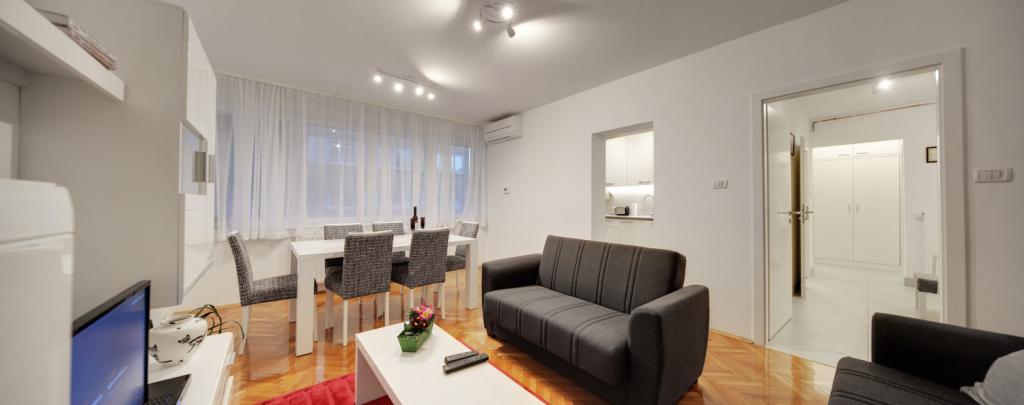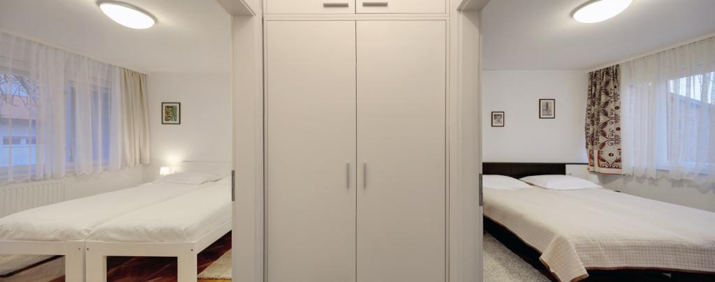 Das Apartment Tvrđa und das Studio-Apartment Osijek befinden sich im Hochparterre des Gebäudes in der Istarska-Straße, in der Nähe des Eurodoms, wo Parkplätze zur Verfügung stehen. Die Wohnungen liegen in der Nähe der Hauptstraßen und Wege, die Osijek mit den umliegenden Städten und der Autobahn A5 verbinden. In unmittelbarer Nähe der Wohnung befinden sich das Fußballstadion und die Sporthalle „City Garden“, „City Pools“, Restaurants und das historische Zentrum von Osijek – die Barockfestung. Das Apartment Tvrđa ist ein Dreizimmerapartment mit einer Fläche von 68 m². Ihnen stehen zwei Doppelzimmer und ein Wohnzimmer mit Schlafsofa, zwei Badezimmer, eine Küche und eine Terrasse zur Verfügung. Das Studio-Apartment Osijek ist 30 m² groß. Es besteht aus einer Eingangshalle, einem Wohnzimmer, einem Schlafzimmer, einer Küche und einem Badezimmer. Das Schlafzimmer, in dem sich ein Bett befindet, ist durch eine mit Spiegeln verkleidete Schiebetür vom Wohnzimmer getrennt. Im Wohnzimmer gibt es ein Schlafsofa. Ein Parkplatz steht in der Tiefgarage des Eurodoms, in unmittelbarer Nähe des Gebäudes, zur Verfügung.