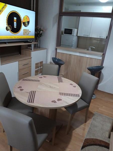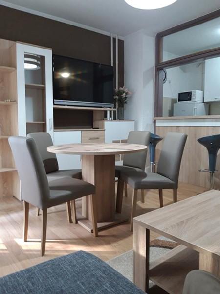 Das Apartment „Centros“ befindet sich im obersten Stadtzentrum, in unmittelbarer Nähe des Hotels Osijek. Neu eingerichteter Raum, komplett ausgestattet. Im Wohnzimmer gibt es ein Sofa, das sich leicht in ein Doppelbett umbauen lässt, einen Esstisch, einen großen Fernseher, eine Bar mit Barhockern. Im Schlafzimmer gibt es ein Doppelbett für zwei Personen und ein Sofa als Zustellbett, Kleiderschränke, Kommode, Spiegel, Fernseher, Schreibtisch. In der Küche gibt es einen Tisch, einen eingebauten Herd und Backofen sowie einen Kühlschrank mit Gefrierfach , Geschirrspüler. Im Badezimmer gibt es eine Duschkabine und eine Waschmaschine. Der gesamte Raum ist klimatisiert, mit Zentralheizung und WLAN. Die Wohnung liegt im Stadtzentrum, in der Nähe aller wichtigen städtischen Einrichtungen (Theater, Kathedrale, Hotels, Banken, Promenade entlang der Drau, Restaurants, zahlreiche Cafés...).