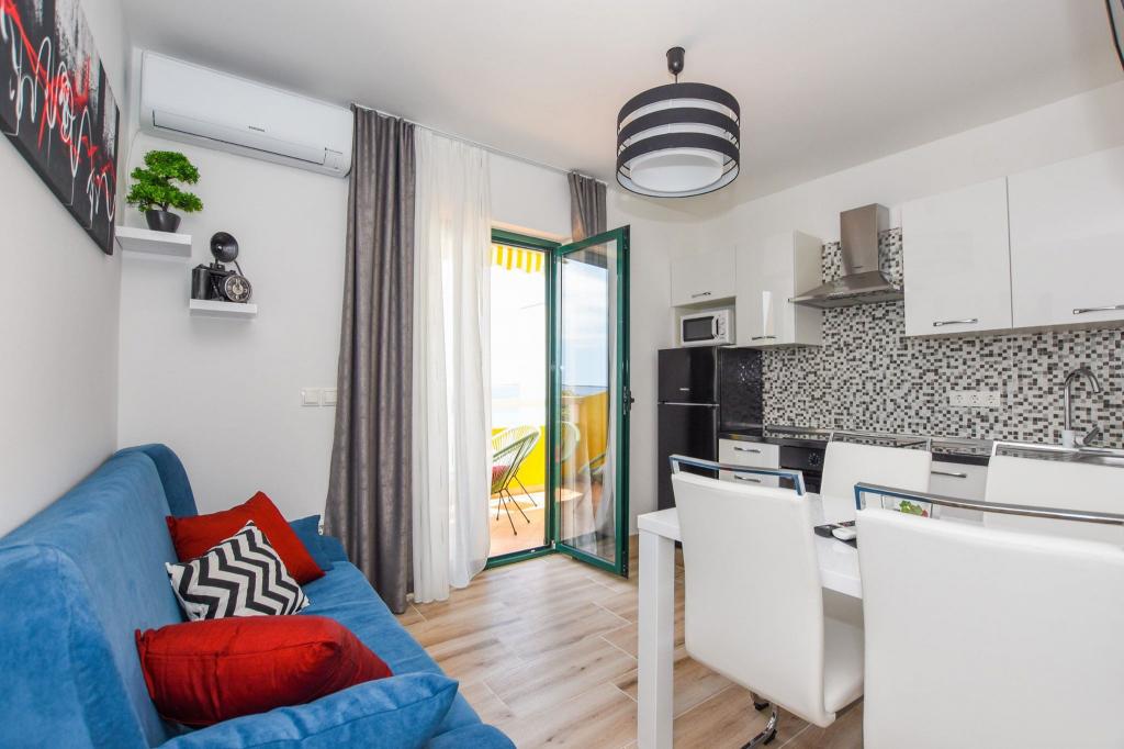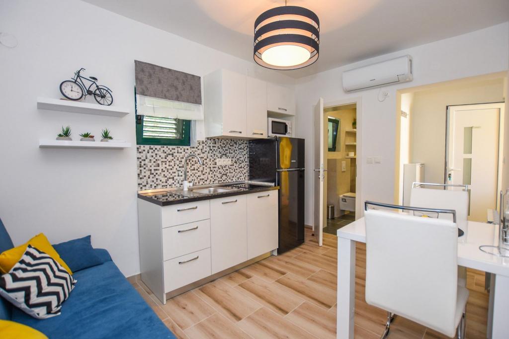 6 NEUE, MODERN EINGERICHTETE Apartments, alle Einheiten verfügen über Klimaanlage, eigenes Badezimmer mit Dusche und Küche mit Geschirrspüler, Kühlschrank, Toaster und Wasserkocher sowie einen Gemeinschaftsraum zum Waschen, Trocknen und Bügeln, kostenloses WLAN, LED-TV, Kaffeemaschine , Kinderbett. Kostenlose Privatparkplätze im Umkreis von 50 Metern. Für einige Unterkünfte steht eine Terrasse zur Verfügung. In einem Umkreis von 20 Metern gibt es schöne Strände, Cafés, Kinderspielplatz, Restaurants, Geschäfte und ein Spielzimmer.