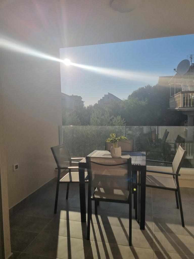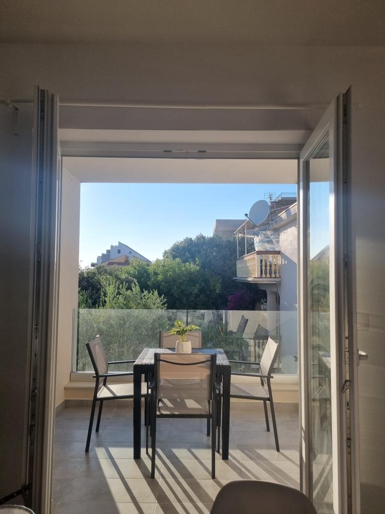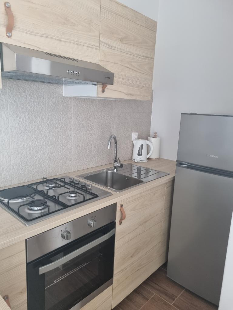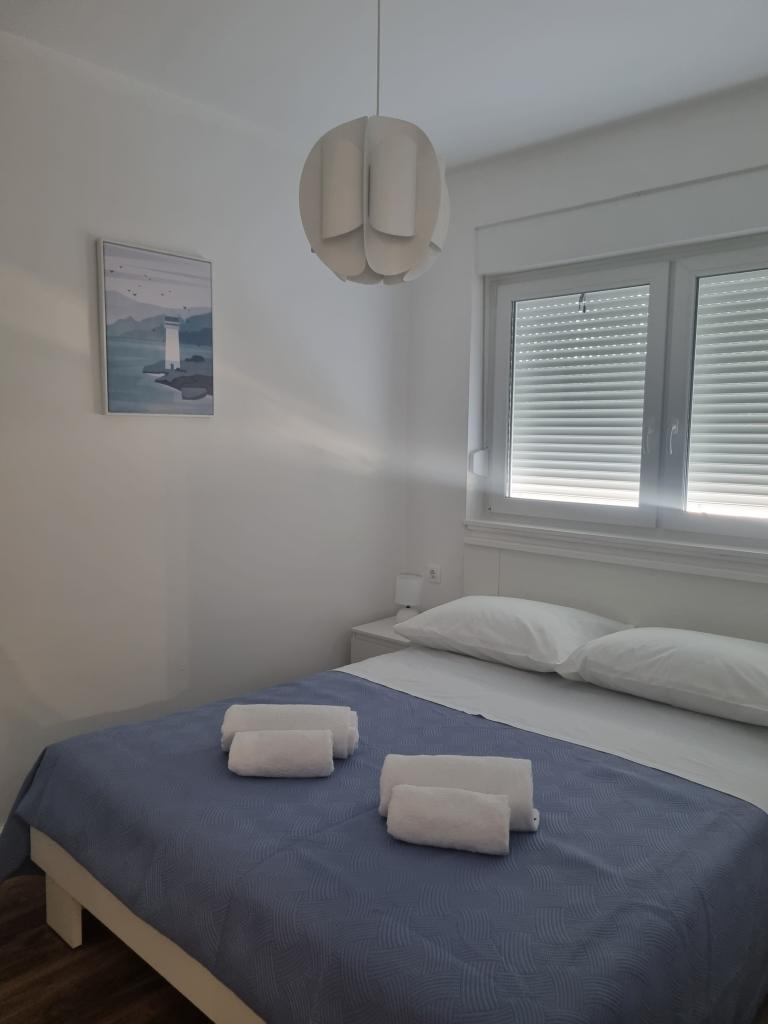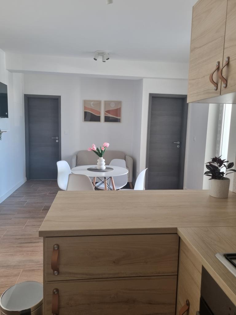 Zwei brandneue Wohnungen mit jeweils 55 m². Jede Wohnung verfügt über zwei Schlafzimmer (mit Doppelbetten 160x200), ein Badezimmer, eine Küche mit Wohnzimmer und eine Terrasse mit seitlichem Meerblick. Die Apartments sind auf die gleiche Art und Weise eingerichtet und befinden sich im 1. Stock eines Einfamilienhauses. Das Haus liegt in erster Reihe zum Meer, sodass Sie 10 Meter zum Strand haben.