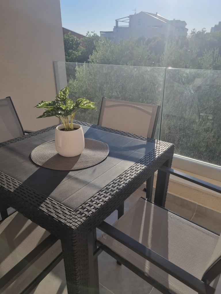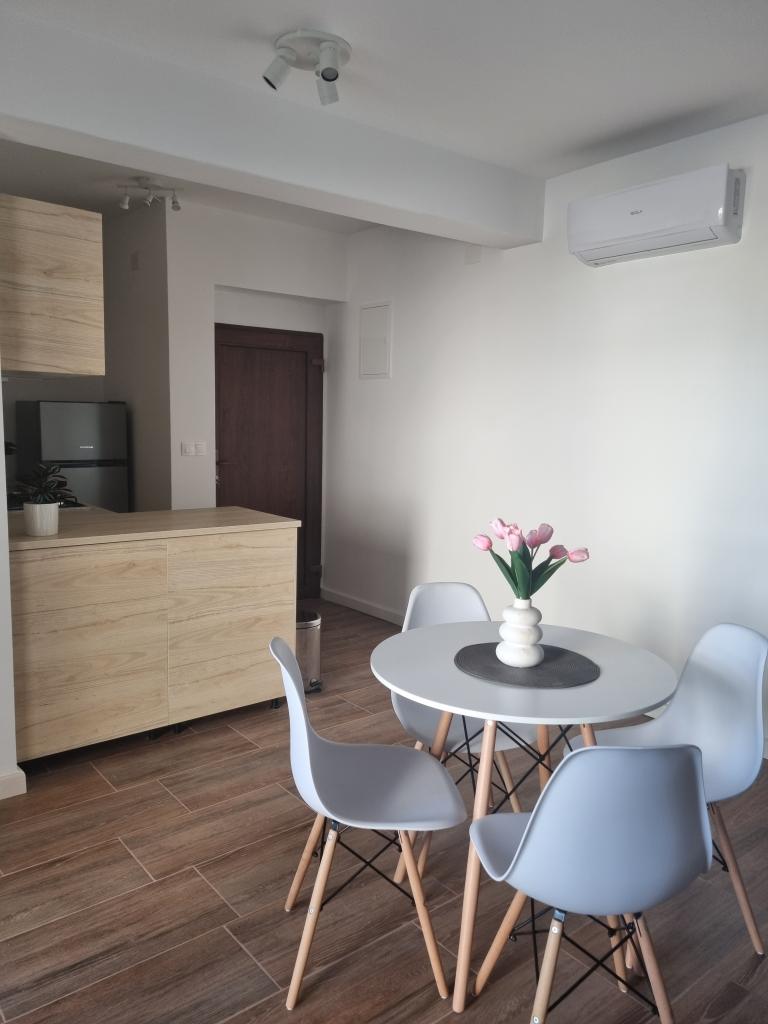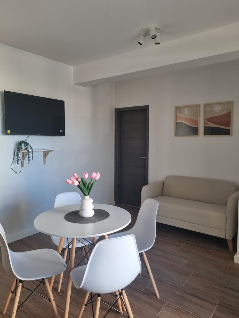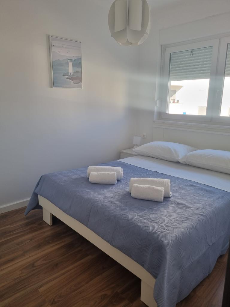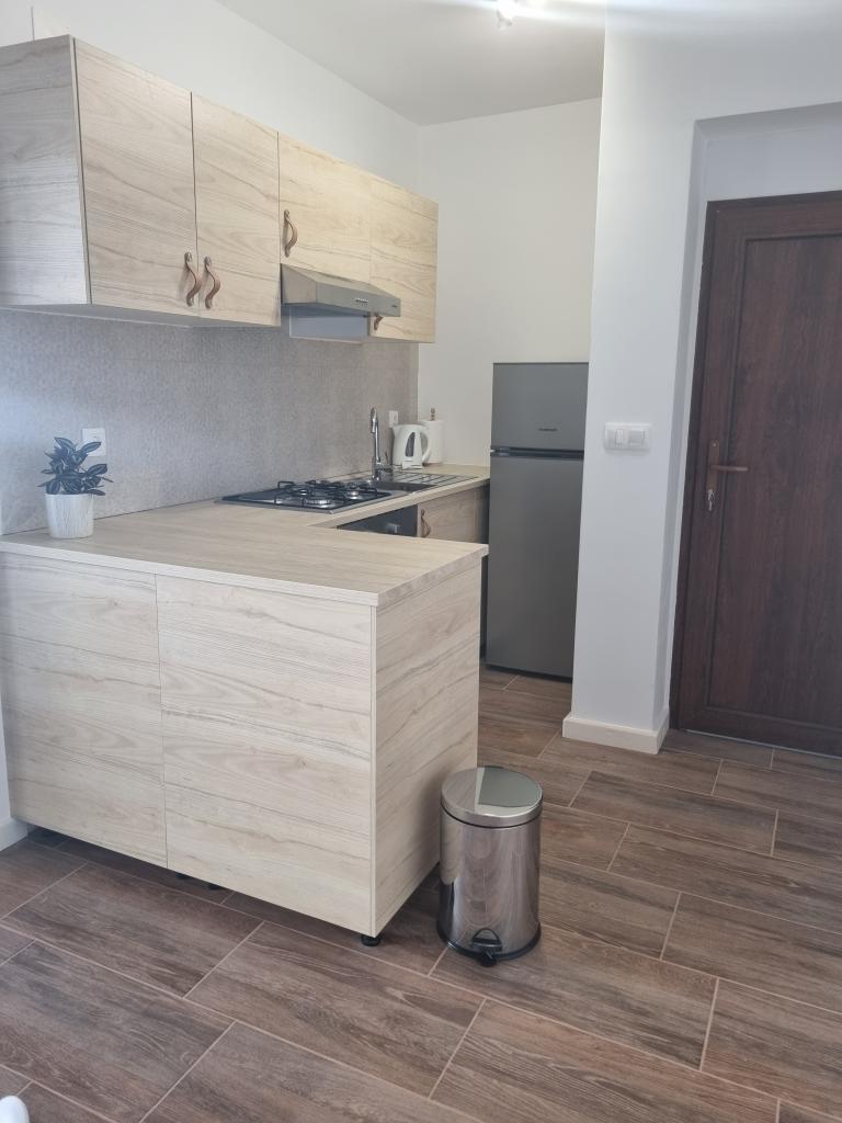 Zwei brandneue Wohnungen mit jeweils 55 m². Jede Wohnung verfügt über zwei Schlafzimmer (mit Doppelbetten 160x200), ein Badezimmer, eine Küche mit Wohnzimmer und eine Terrasse mit seitlichem Meerblick. Die Apartments sind auf die gleiche Art und Weise eingerichtet und befinden sich im 1. Stock eines Einfamilienhauses. Das Haus liegt in erster Reihe zum Meer, sodass Sie 10 Meter zum Strand haben.
