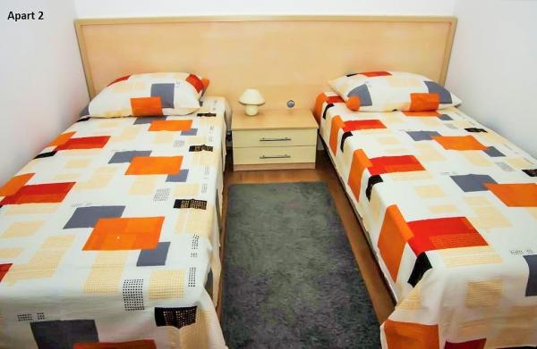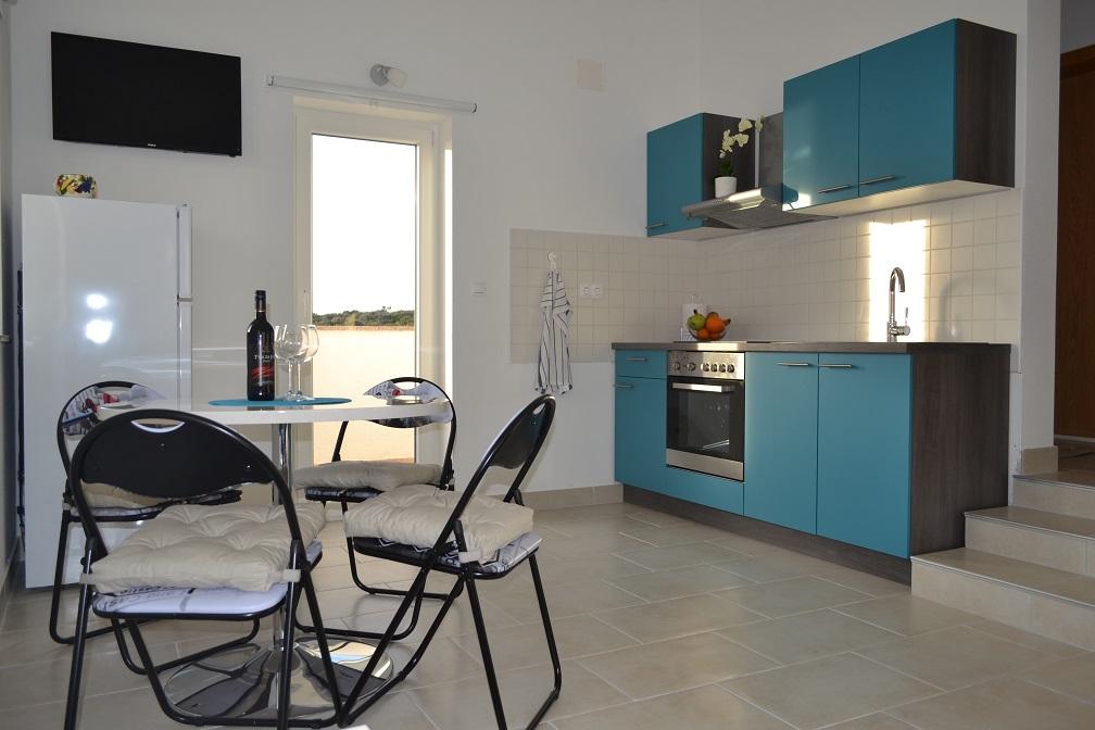 Drei Wohnungen zur Miete in Häusern in Mandre. Zwei Wohnungen Maris 1 und Andrea 2 befinden sich im Obergeschoss und eine Andrea 1 befindet sich im Erdgeschoss. Alle Apartments haben separate Eingänge. Die Apartments eignen sich auch für Ferien einer oder mehrerer Familien. Sie befinden sich in einem erhöhten Bereich mit einem schönen Blick auf die Adria. Sie befinden sich in einem weniger bevölkerten Teil von Mandre und sind von Nadelwäldern umgeben, die eine echte Atmosphäre zum Entspannen und Genießen schaffen. Die Apartments bestehen aus einer Küche, einem Wohnzimmer, einem Bad und zwei Schlafzimmern. Ein Schlafzimmer hat ein Doppelbett, während das andere zwei Einzelbetten hat. Die Apartments verfügen zudem über eine eigene Terrasse und kostenfreie Parkplätze. Der Strand ist 200 m entfernt. Möglichkeit, ein Boot im nahe gelegenen Hafen zu mieten. Ein Vorschuss wird als Buchungsbestätigung gezahlt. Kurtaxe im Preis inbegriffen. Sie können die freien Daten für die Apartments im Kalender sehen oder uns eine Anfrage per E-Mail-Adresse senden. Wir werden jeden Gast begrüßen. Herzlich willkommen!