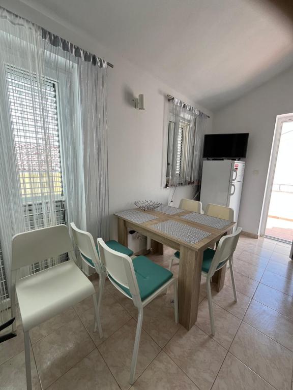 Die Wohnung im ersten Stock. Voll ausgestattet. In einem ruhigen Teil von Mandre. Die Entfernung 200m. Kapazität: bis zu 6 Personen. Nähe RCA, Novalja und die Altstadt. Der Strand bietet einen Blick auf die Inseln Maun, Silba, Maun, Olib und ist Mandre als einer der schönsten Orte an der Adria betrachtet. Es ist geeignet für Familien mit Kindern.