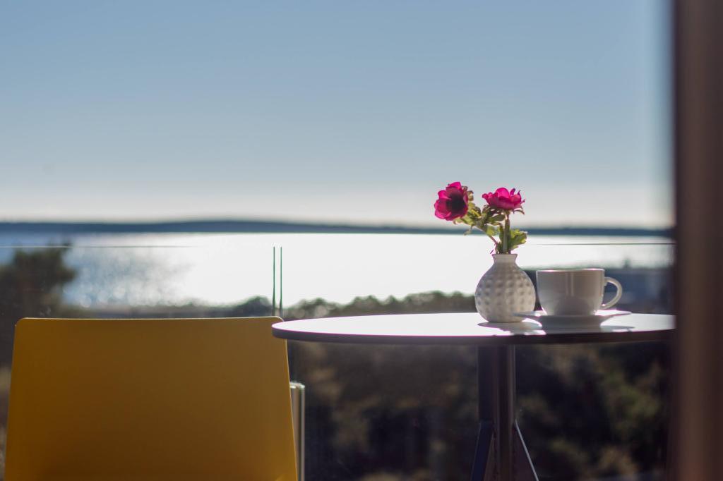 Apartment mit schöner Aussicht von der Terrasse und hervorragend ausgestattet, neu. Eine ruhige Straße und alles, was Sie brauchen, innerhalb von 5 Minuten zu Fuß (Geschäft, Apotheke, Zentrum, angenehme Café-Terrasse, Konditorei...). Eine Promenade zum Flanieren oder Joggen über 10 km... das Meer ist klar und die Strände sind geradezu voll mit sanften Zugängen zum Meer. Schlemmen und wunderschöner Urlaub