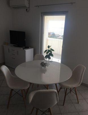 Komplett eingerichtete Wohnung (40 m2) auf der Insel Pag (Mandre). Die Wohnung verfügt über 1 Schlafzimmer mit Doppelbett, Wohnzimmer mit Schlafcouch, Küche, Bad mit Dusche und große Terrasse (25 m2).Die Wohnung befindet sich in einem Einfamilienhaus im ersten Stock in der Nähe des Zentrums, bietet Ihnen außergewöhnliche Ruhe und ruhig Im Hof befindet sich ein großer Garten mit Tischen, Kamin, bewachter Parkplatz ..