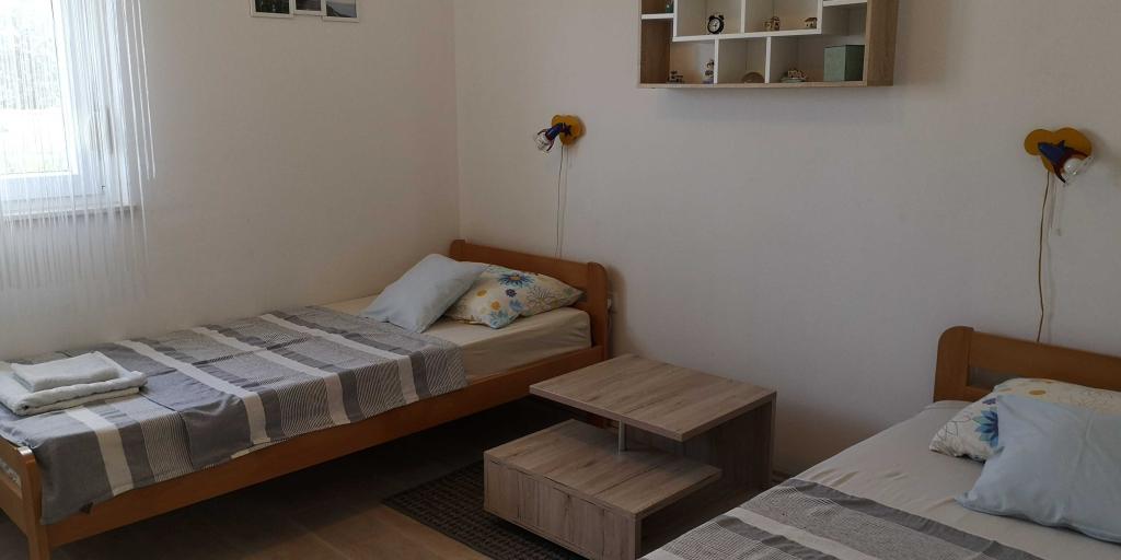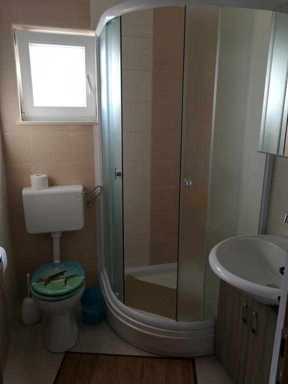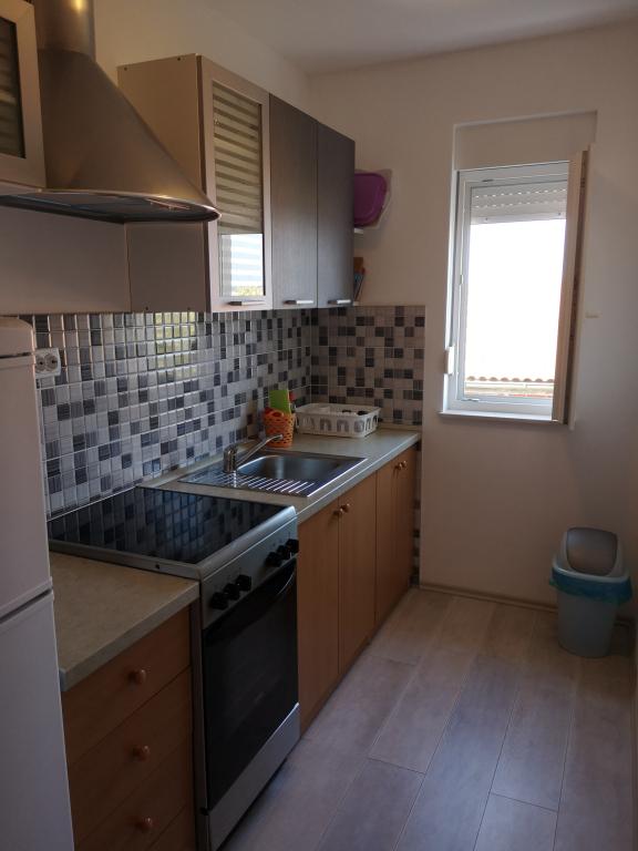 Schön und modern eingerichtete Wohnung im Erdgeschoss und im ersten Stock, 50 m vom Meer entfernt, geeignet für Familien mit Kindern. Die Wohnung verfügt über zwei Schlafzimmer, ein Wohnzimmer, eine voll ausgestattete Küche, ein Badezimmer und eine Terrasse. Klimaanlage und WLAN sind im Preis inbegriffen. Hinter dem Haus ist ein Parkplatz vorhanden. Im Hof gibt es einen Grill und eine Außendusche, die tagsüber zum Abkühlen einlädt. Der Strand ist 50 m entfernt, es gibt einen Steinteil und einen Kiesteil, der für kleinere Kinder geeignet ist.