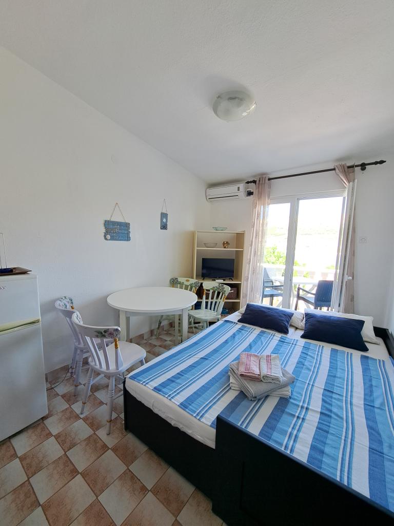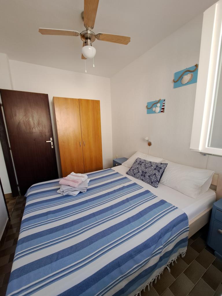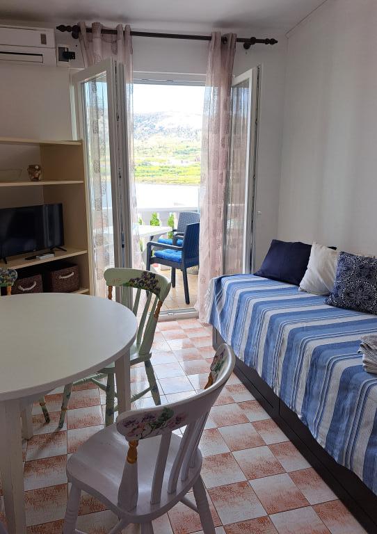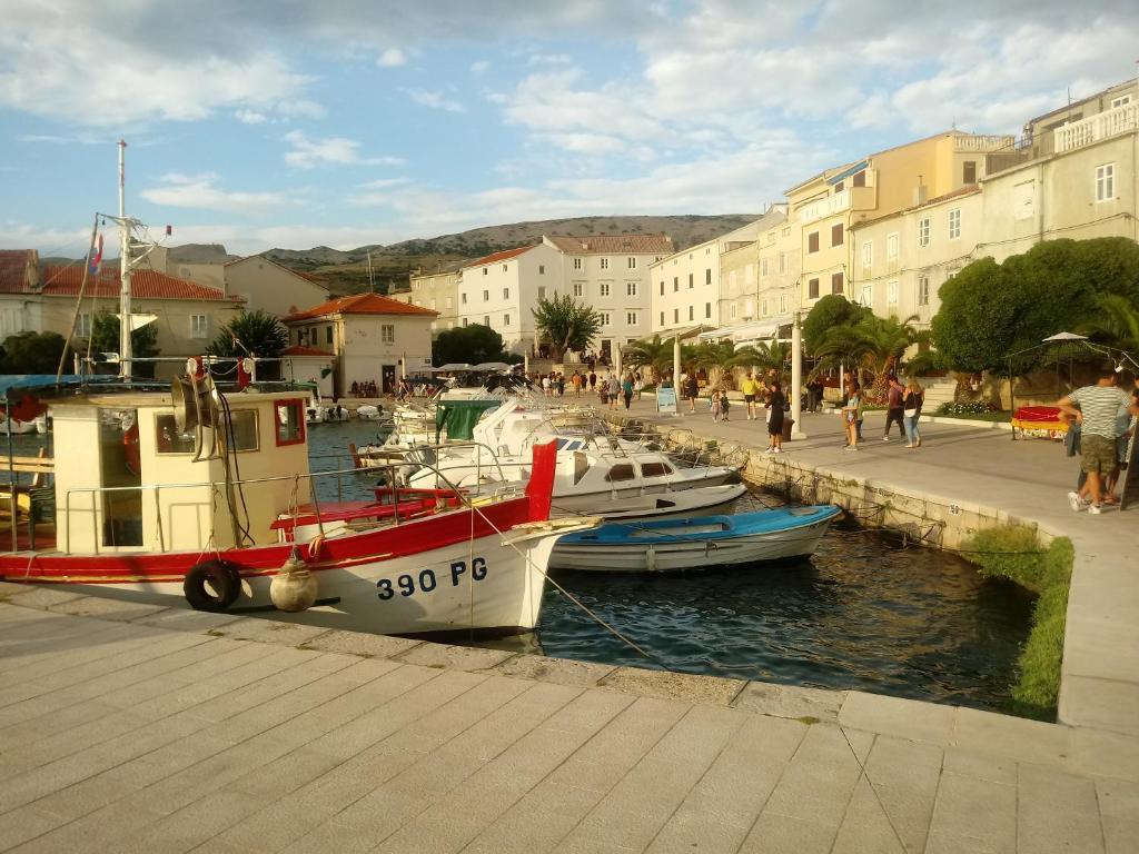 Die Wohnung befindet sich auf der Insel Pag, in der ruhigen Ljubačka-Straße 7, in einem Einfamilienhaus. Sie besteht aus einem Schlafzimmer, einem Wohnzimmer, einem Badezimmer, einer Küche und einem Flur. Das Wohnzimmer verfügt über ein Ausziehbett (ausgeklappt entspricht es einem Doppelbett (160 x 200 cm). Kostenlose Parkplätze stehen vor dem Haus zur Verfügung. Das Zentrum von Pag und der öffentliche Stadtstrand Prosika liegen ganz in der Nähe (ca. 900 m bzw. 10 Gehminuten), während zwei kleine Strände 100 m vom Haus entfernt sind.