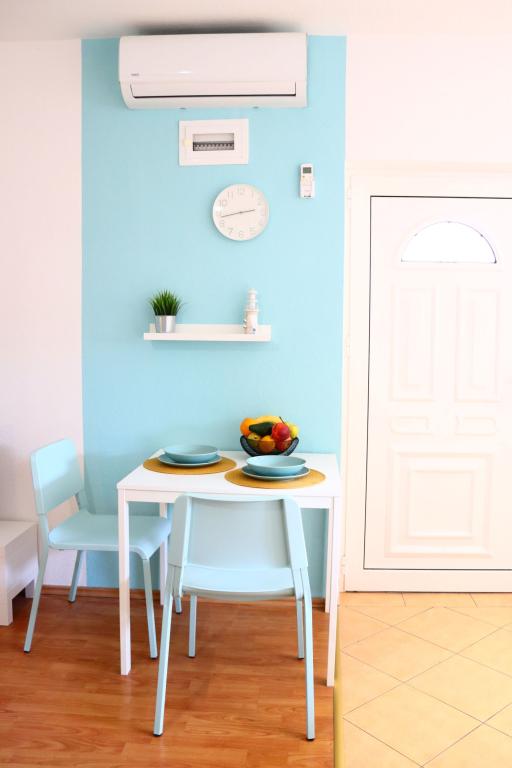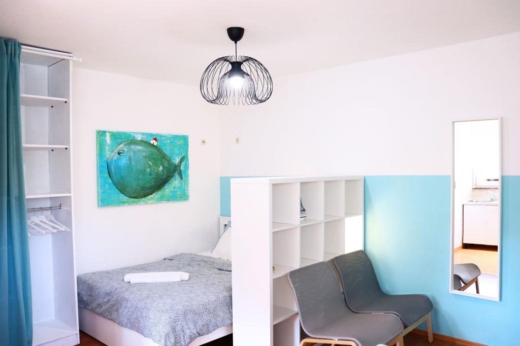 Apartment A4 ist sehr schön, geräumig, sauber mit einer großen Terrasse mit Blick auf das Meer und einer sehr gut ausgestatteten Küche. Die Dame des Hauses ist nett und freundlich. Die Lage der Wohnung ist ruhig, aber gleichzeitig nur wenige Schritte vom Meer, Geschäften und Restaurants entfernt. Für Familien mit sehr kleinen Kindern ist die Wohnung nicht besonders geeignet, der Zugang erfolgt über eine Wendeltreppe und das Schlafzimmer mit getrennten Betten liegt außerhalb der Wohnung mit separatem Eingang von der Terrasse aus, zum Schlafen mussten wir auf der Couch ausweichen, die wir auch genutzt haben vermeiden wollte, indem ich eine Wohnung mit mehreren Schlafzimmern wählte. Aber für andere wird die Wohnung eine gute Wahl sein.