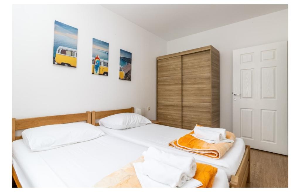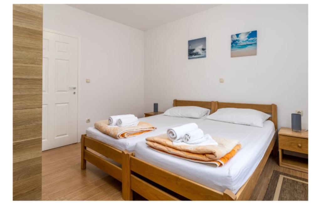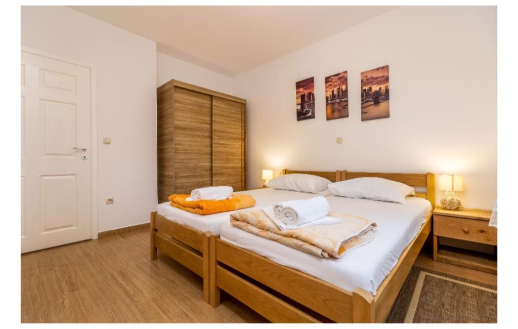 Cuka Apartments befinden sich in einem ruhigen Teil von Pakostane, umgeben von Pinien, ca. gelegen ist. 150 Meter vom Meer entfernt. Die Wohnungen sind neu gebaut 2014 Jahre. Sie sind mit einem Geschirrspüler, Sat-TV lcd, Bettwäsche, Handtücher, Klimaanlage, Wi-Fi, Herd, Wasserkocher, Toaster. Das Parken ist im Hof, der 800 m2, in dem es eine Möglichkeit zum Grillen misst entfernt. Center, einkaufen, Bankgeschäfte, Restaurants und andere gastronomische und touristische Einrichtungen sind in 5 Minuten zu Fuß vom Haus Cuka