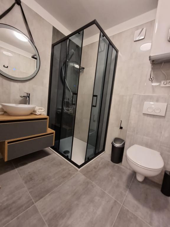 Modern eingerichtete Apartments im zentralen Teil von Pakostane. Klimaanlage, voll ausgestattet (Handtücher, Bettwäsche usw.) Die Anlage befindet sich 400 m vom Meer und 200 m vom Zentrum entfernt. Das nächste Geschäft ist 20 m entfernt und die Bäckerei 15 m.