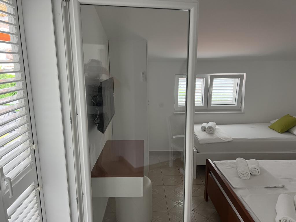 Komplett eingerichtete Apartments nahe dem Stadtzentrum in einer ruhigen Straße, die zweite Zeile mora.Objekt liegt 3 Minuten zu Fuß vom Stadtzentrum entfernt und 5 Minuten zu Fuß zu plaže.Objekt hat viel Grün und Schatten, und bietet Gästen einen großen Rasen terasama.Veliki zum Spielen geeignet djece.Parking für Autos in hladu.Turisti können den Grill im Garten benutzen. Die Gastgeber sind freundlich und gastfreundlich, und seine Erfahrung von über 35 Jahren im Tourismus garantieren unseren Gästen den besten Service.