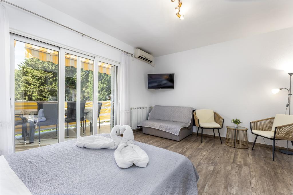 Kurtov Apartments befinden sich am Eingang zu Pakostan, im Kiefernwald, die unsere Wohnung schöne und ruhige Atmosphäre und viel Schatten bietet, liegt. Wenn Ihre natürlichen Schatten ist nicht genug, sind unsere Wohnungen sind mit Klimaanlage ausgestattet. Der Strand ist etwa 10 Minuten zu Fuß sowie in die Innenstadt und das nächste Geschäft und Restaurant ist nur 5 Minuten von uns entfernt. Der Hof ist ein Parkplatz und ein Grill. Mehr Informationen auf unserer Website.