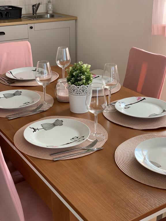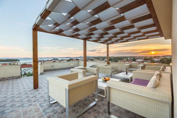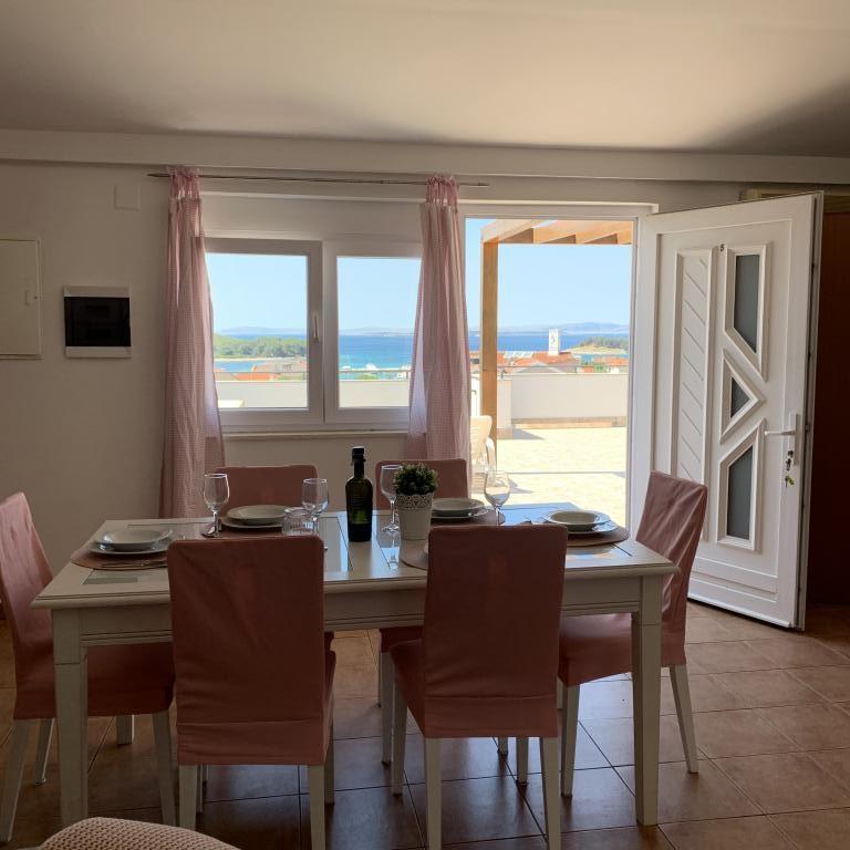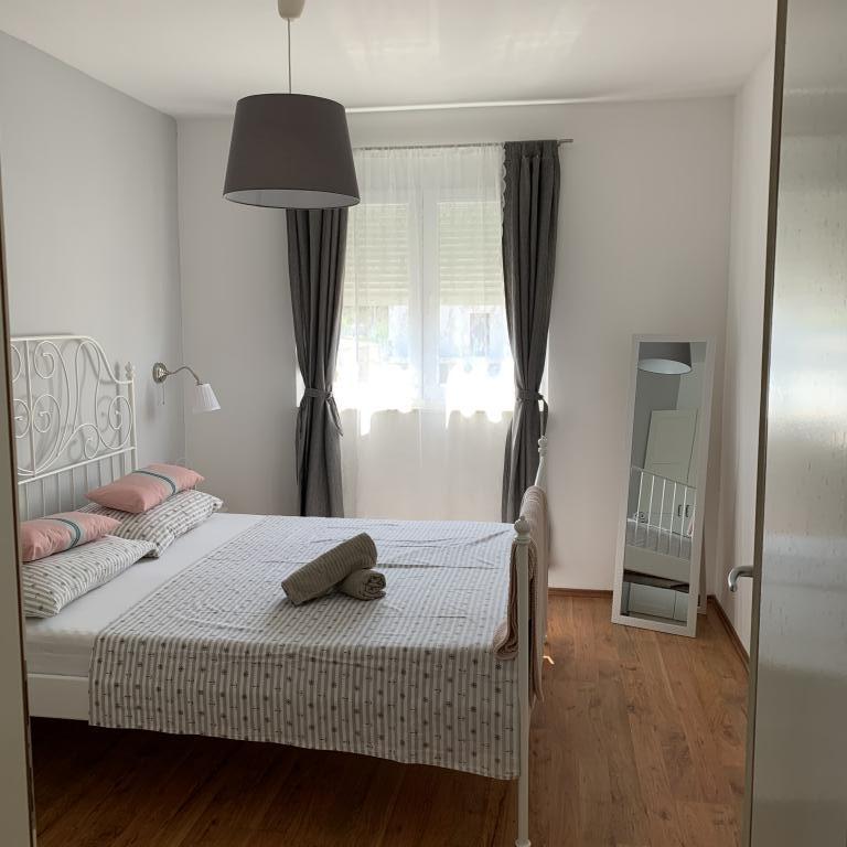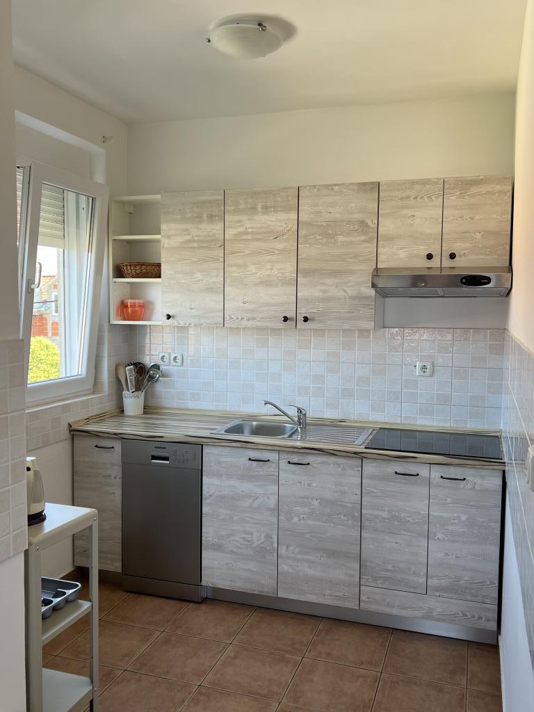 Voll ausgestattete und moderne Apartments in einem ruhigen Teil von Pakostane. Die Anlage befindet sich nur 3 Gehminuten vom Stadtzentrum und 5 Minuten zu Fuß bis zum Sandstrand.