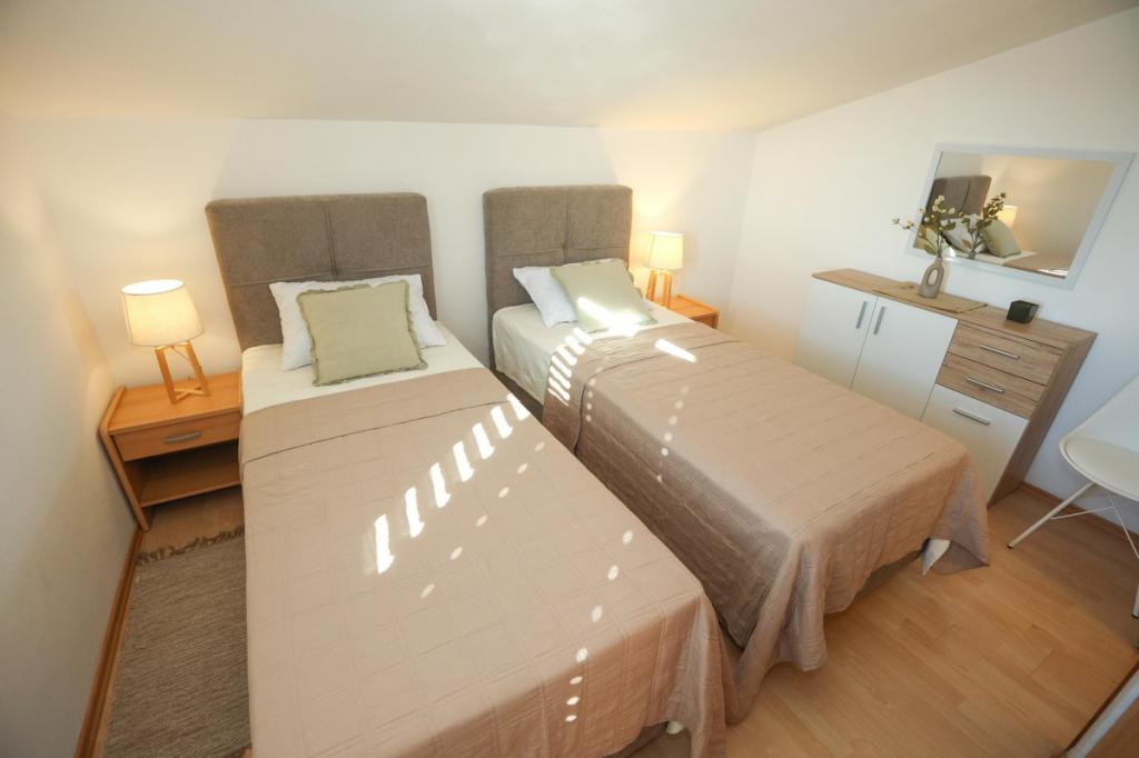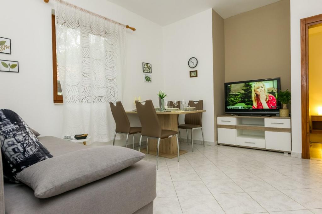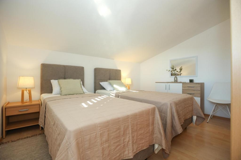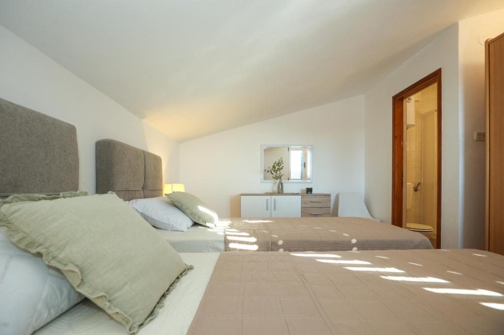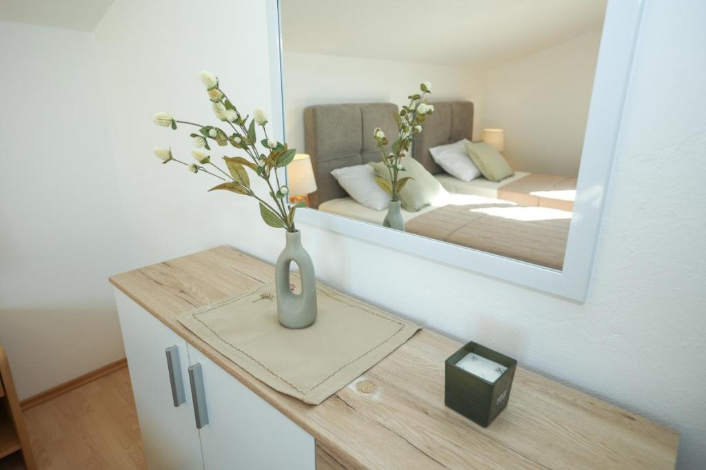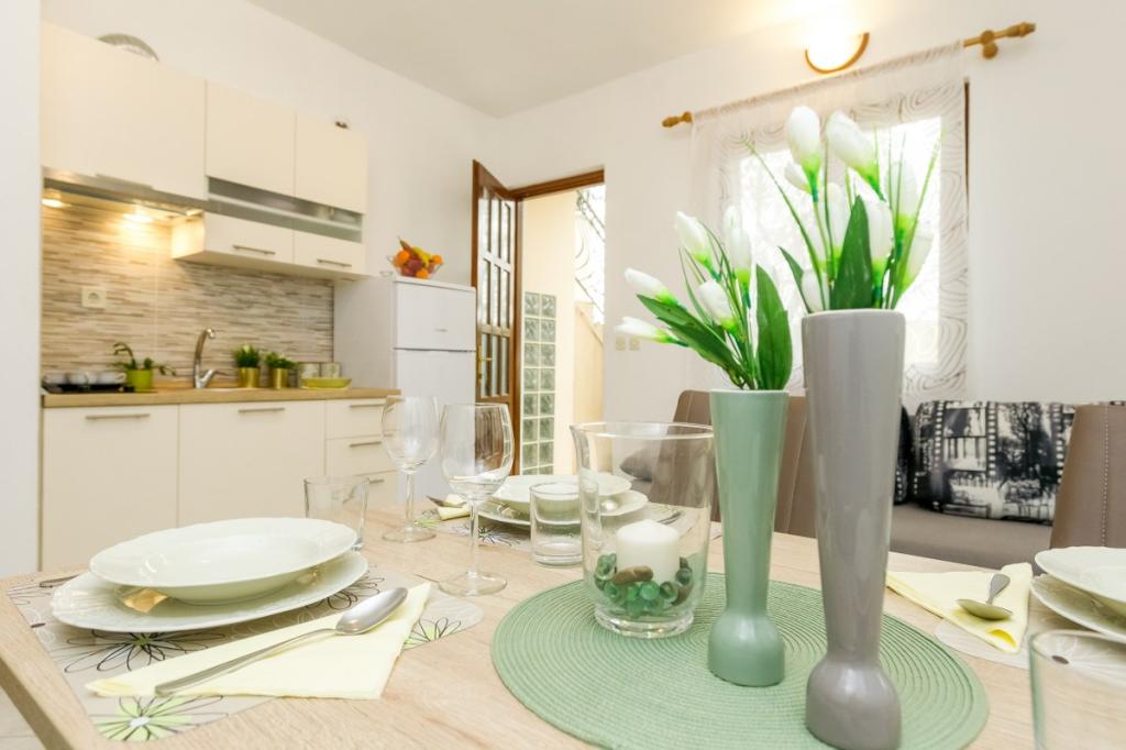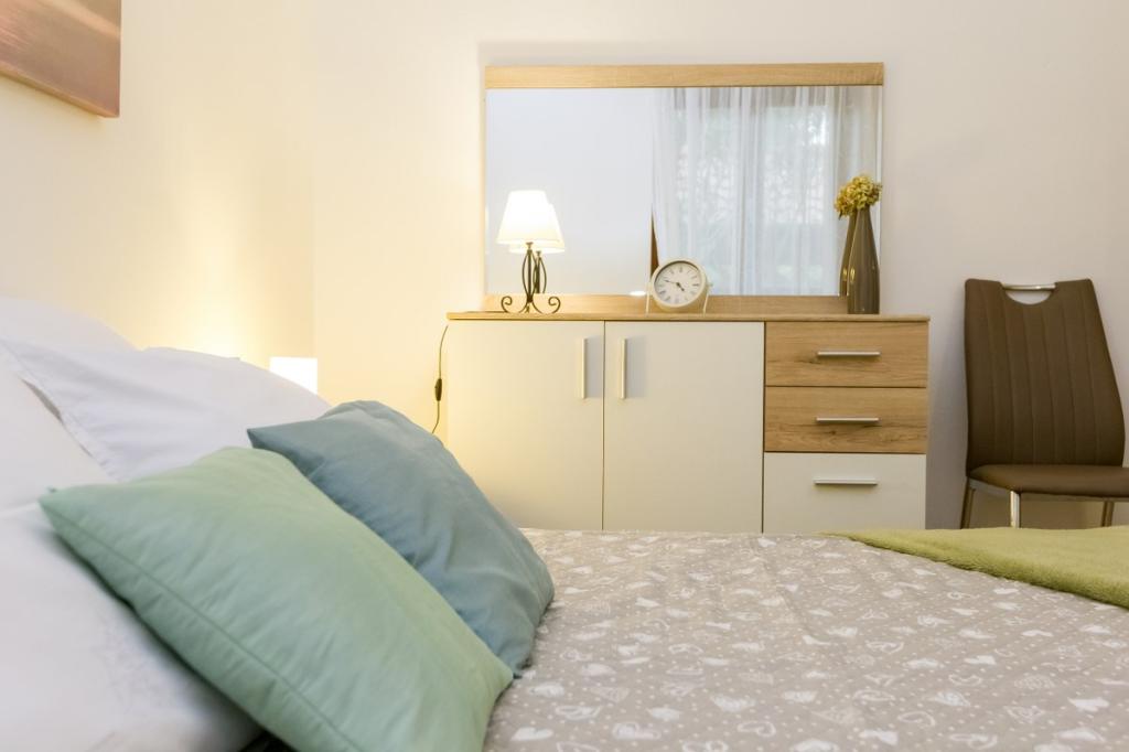Unsere Unterkunft bietet eine angenehme, wohnliche Atmosphäre, in der sich Gäste wohlfühlen und herzlich willkommen sind. Sie befindet sich in bester Lage, nur 400 Meter vom Stadtzentrum entfernt, und alle Annehmlichkeiten des täglichen Bedarfs sind bequem zu erreichen – der nächste Laden ist nur 30 Meter entfernt. Das Haus besteht aus drei Wohneinheiten, jede mit eigenem Balkon, auf dem Sie Ihren Morgenkaffee oder entspannte Abende genießen können. Das größte Apartment verfügt zusätzlich über drei geräumige Terrassen, die noch mehr Platz zum Verweilen im Freien und für gemeinsame Momente bieten. Gästen steht außerdem ein gemeinsamer Außenbereich mit einem gläsernen Pavillon mit Küche, einem Kamin und einem großen Tisch zur Verfügung, der sich ideal für gesellige Runden und Mahlzeiten im Freien eignet. Dieser warme und gemütliche Bereich liegt inmitten von Grün und bietet eine ruhige Umgebung zum Entspannen, für Gespräche und um schöne Erinnerungen zu schaffen. Die Unterkunft eignet sich für verschiedene Gästetypen und ist besonders angenehm für Familien mit Kindern, die hier unbeschwert in einer sicheren und geräumigen Umgebung spielen können. Jedes Apartment verfügt zudem über einen eigenen Parkplatz im Freien, um Ihren Aufenthalt so einfach und unkompliziert wie möglich zu gestalten. Als Gastgeber stehen wir Ihnen jederzeit mit Rat und Tat zur Seite und helfen Ihnen gerne bei der Organisation Ihres Aufenthalts – wir möchten, dass Sie sich wie zu Hause fühlen und nur schöne Erinnerungen aus Pakoštane mitnehmen.