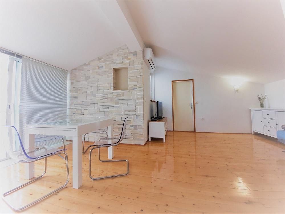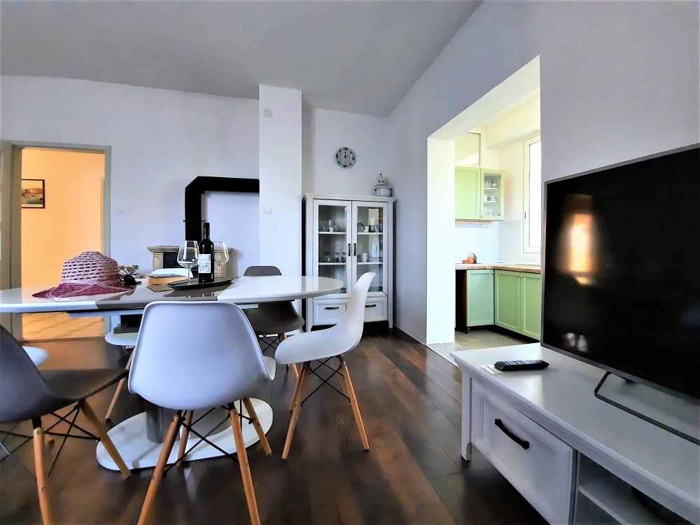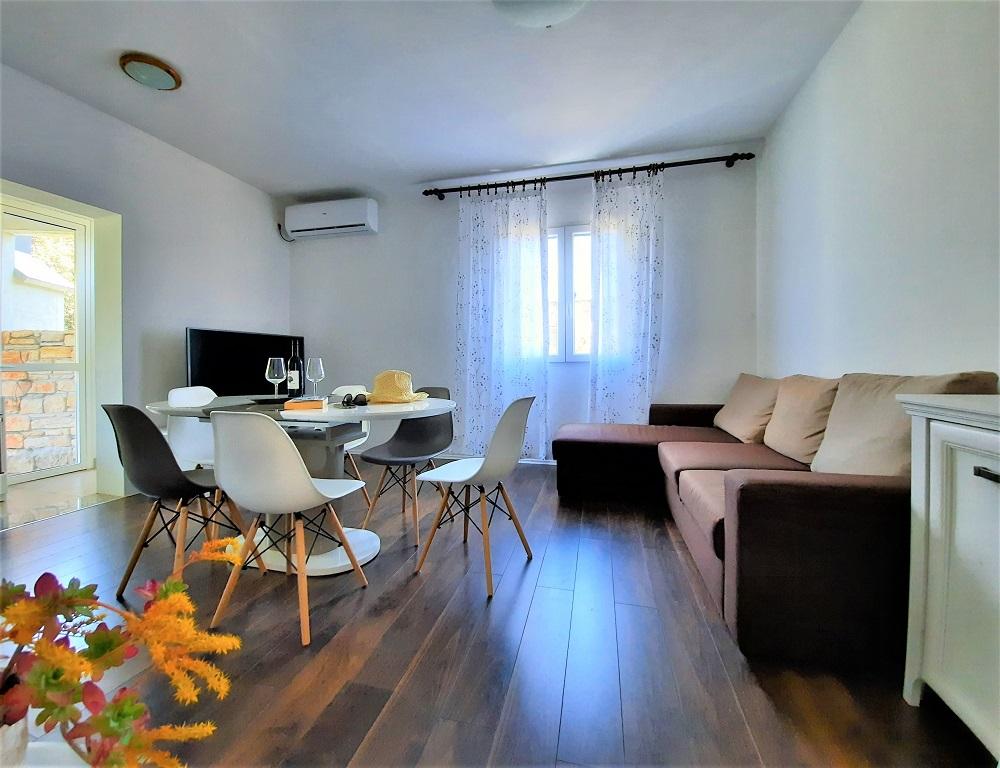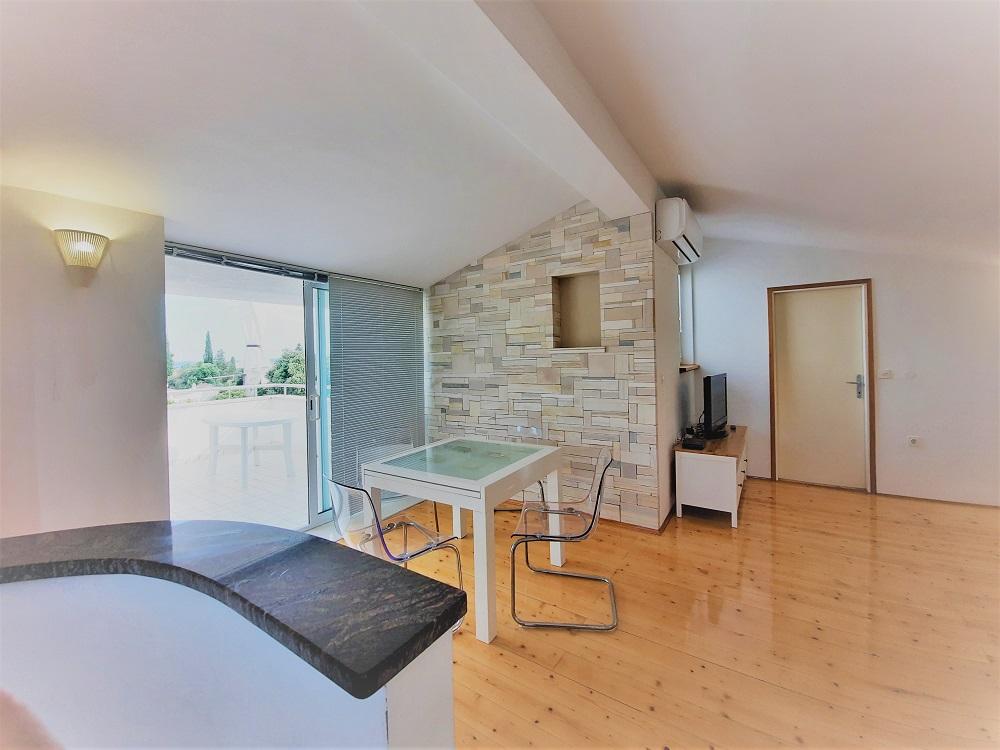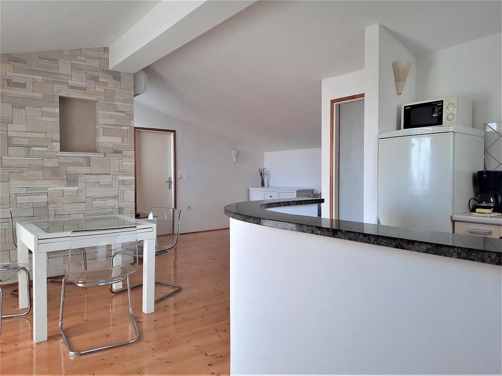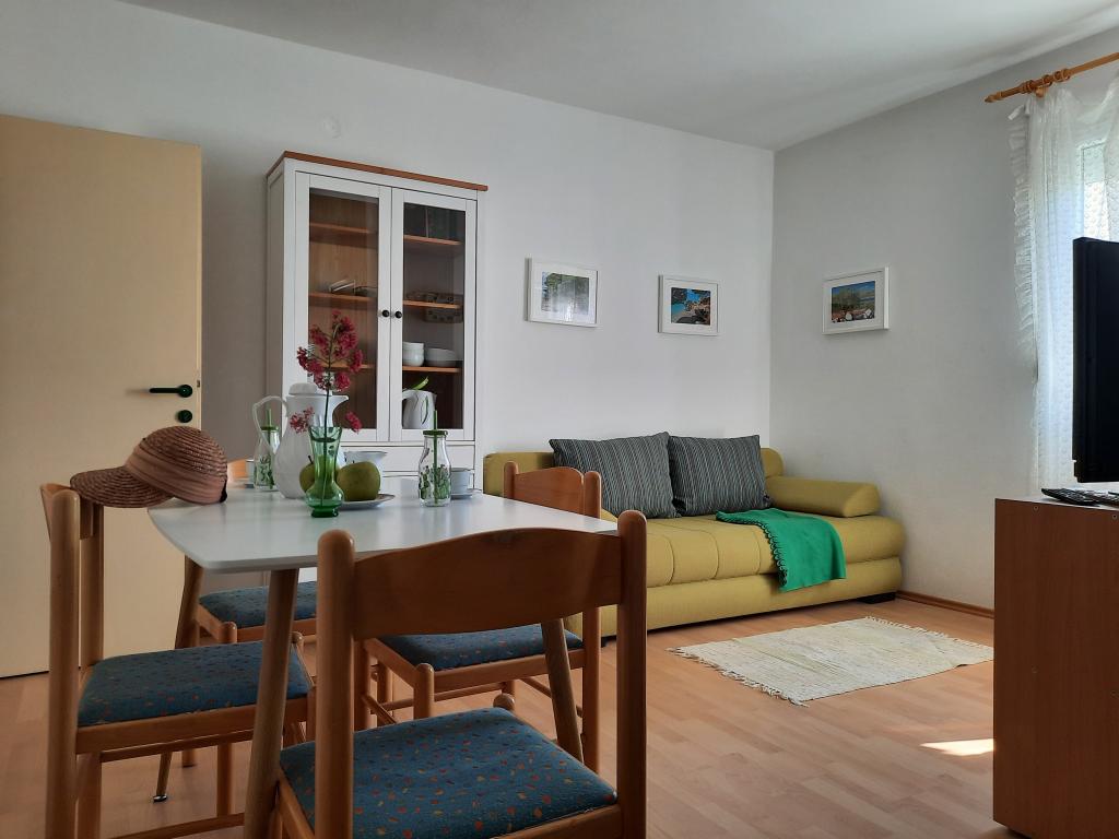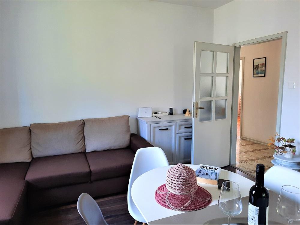 Wir wohnten in der Wohnung im Erdgeschoss, A 6+2. Die Wohnung war sehr geräumig und trotz der Hitze ist es relativ gemütlich in der Wohnung. Wir hatten alles, was wir brauchten, einen gesicherten Parkplatz im Schatten im Hof des Hauses. Das Beste war die großzügige Terrasse, auf die Sie von der Küche aus zugreifen und die nötige Privatsphäre genießen können. Daneben gibt es einen weiteren kleineren Balkon, zu dem Sie von einem der Schlafzimmer aus Zugang haben. Die Gastgeber sind zuvorkommend, angenehm und für alle Fragen erreichbar. Strand in der Nähe mit Spaziergang im Schatten, was uns wegen der kleinen Kinder sehr wichtig war. Auch der schöne Strand von Pilatuša ist nicht weit entfernt, ideal für einen Aufenthalt mit Kindern, viel Schatten.