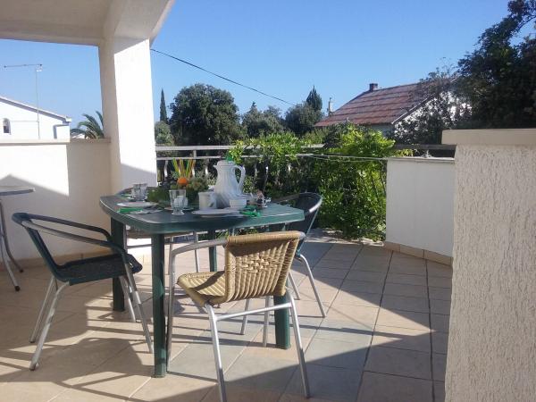 Schöne geräumige Wohnung. Ideale Lage - ruhige Lage abseits der Straße. In der Nähe des Strandes, ausgezeichnetes Fischrestaurant, Lebensmittelgeschäft, Bäckerei, Obst und Gemüse. Angenehme und hilfsbereite Besitzer. Guter Zugang vom Flughafen ZADAR. Parkplätze für Autos. Fahrradkeller. Schöner Garten. Barbecue. Ruhiger Ort für einen aktiven Urlaub. Ausflüge nach Kornati, Krka, Plitvice. Kann ich nur empfehlen :-)))