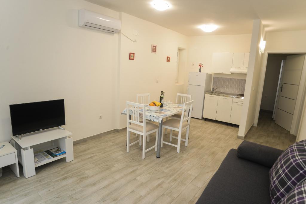 Die Apartments befinden sich in Punti im Stadtteil Pakoštane, nur 5 Gehminuten vom Meer, dem Geschäft und der Bank entfernt. Apotheke, Postamt, Markt, Restaurants und Bars befinden sich im Zentrum der Stadt in unmittelbarer Nähe. Ein Parkplatz ist in der Nähe des Hauptparkplatzes von Pakostane vorhanden. Smart TV, Klimaanlage und WLAN sind im Preis inbegriffen. Wir haben drei Wohnungen, zwei im Erdgeschoss (Nord-Süd) und eine in der Straße (Nord).