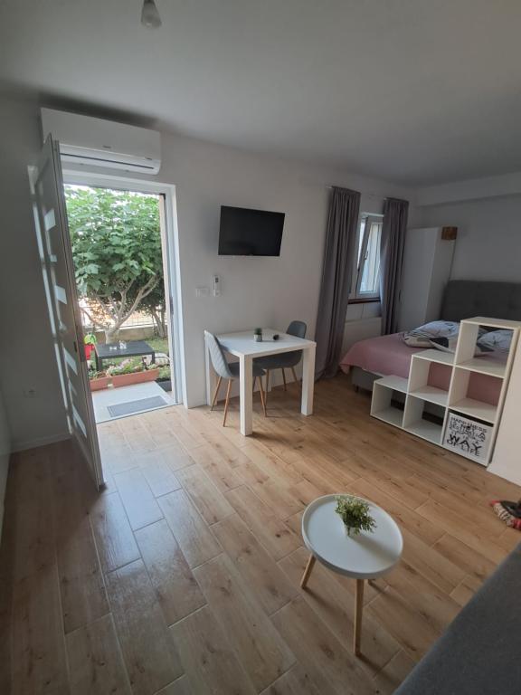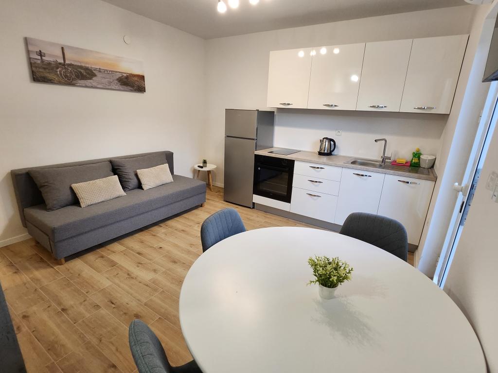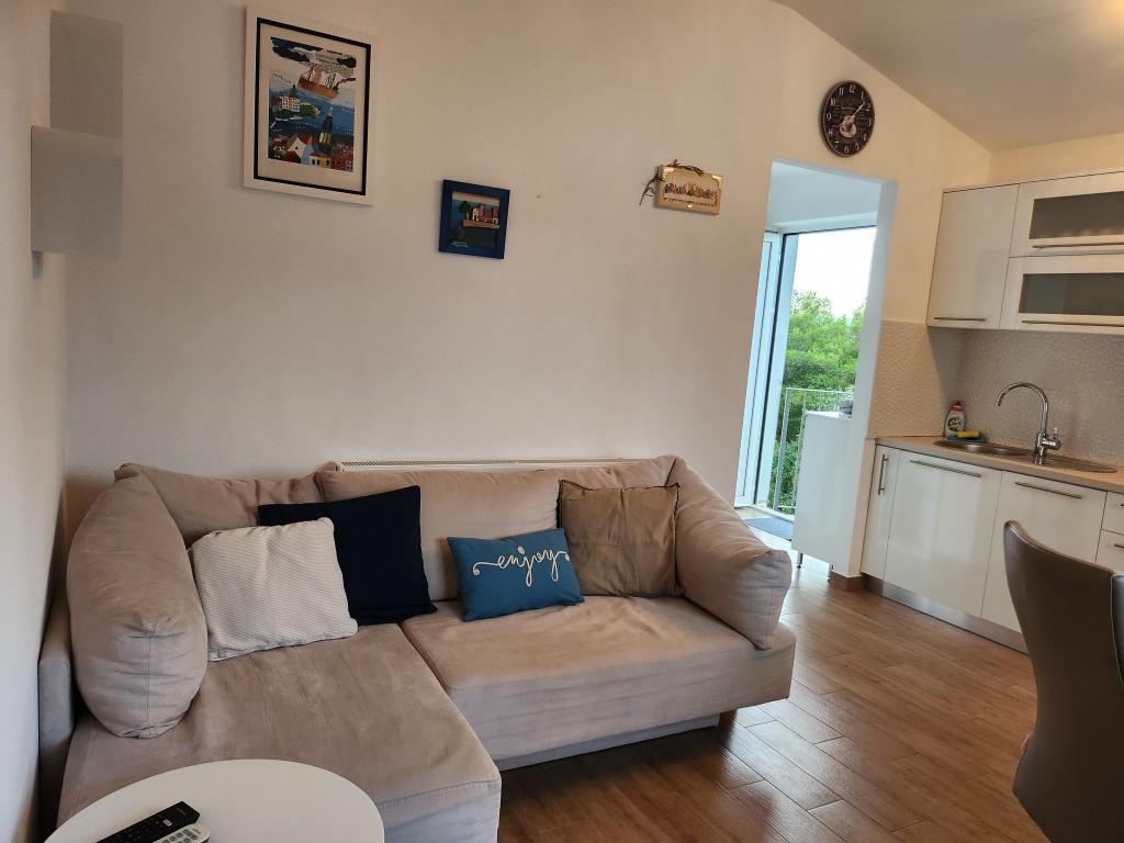 Die Wohnung liegt in der Nähe der Hauptstraße, dort gibt es auch eine Tankstelle und einen großen Laden. Die Umgebung ist ruhig und angenehm zum Leben, der Vrana-See liegt in der Nähe und Sie können den See von der Wohnung aus sehen. Bis zum Stadtzentrum und zum Strand sind es ca. 10 Gehminuten.