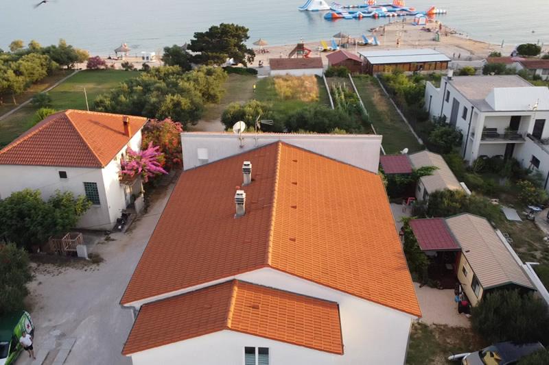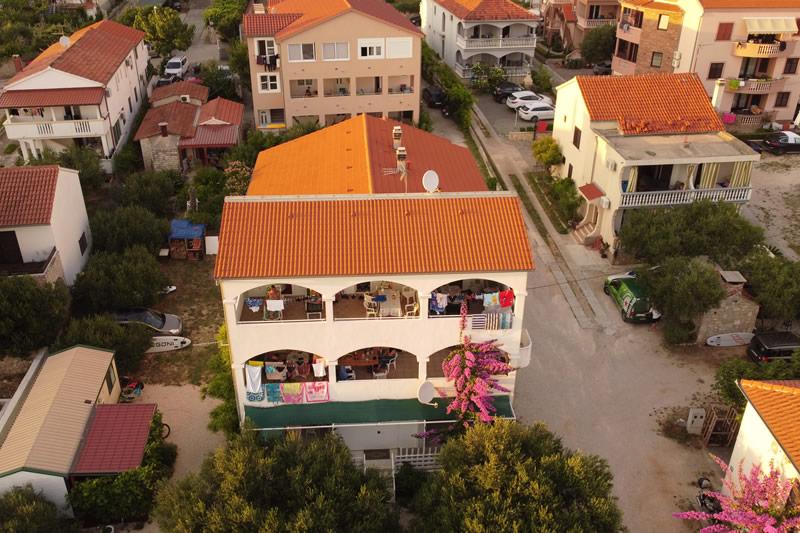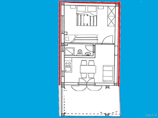 Apartments Sinjal befinden sich in einem Familienhaus, direkt neben einem schönen Sandstrand. Alle Apartments im Angebot verfügen über eine eigene Terrasse mit Meerblick. Genießen Sie die schöne Aussicht auf die nahe gelegenen Inseln und die schöne Adria. Wir befinden uns etwa dreißig Meter vom Strand und etwa 200 m vom Stadtzentrum entfernt. Es gibt einen Parkplatz und einen Grill im Olivenhain vor dem Haus. Alle Apartments sind klimatisiert und verfügen über kostenloses Internet. Die Mobilheime befinden sich im Olivenhain vor dem Haus.