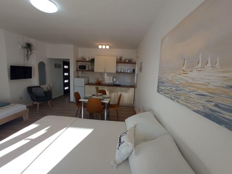 Die Wohnung ist ideal für zwei Personen. Sauber, ordentlich und mit allem ausgestattet, was Sie brauchen. Es liegt in der Nähe des Meeres, Restaurants, Cafés ... Die Besitzer der Apartments sind äußerst komfortabel, kommunikativ und immer für Sie da. Wenn es eine Chance gibt, werden wir nächstes Jahr kommen. Neben Unterkünften verkaufen sie auch ihre hausgemachten Produkte. Feigen sind toll!