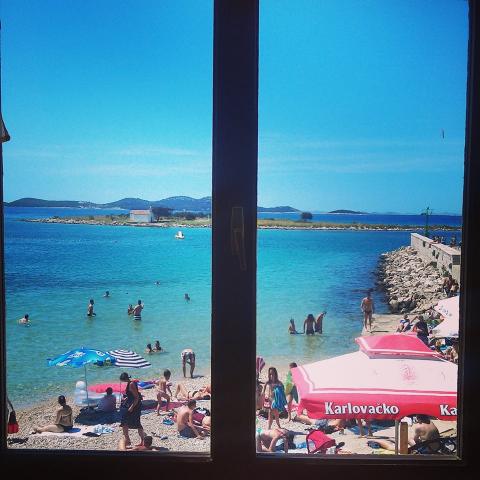 Die Wohnung befindet sich am Hauptstrand Janica, erste Reihe zum Meer mit Meerblick und der Insel Sv. Justina. In Ihrer Nähe befindet sich ein kleines Bistro, in dem Sie frühstücken und den Blick auf das Meer genießen können. Die Wohnung verfügt über 2 Schlafzimmer, 1 Badezimmer, Küche und Wohnzimmer mit Zustellbett. Eine Terrasse mit einem Tisch können Sie genießen, während Sie speisen und beobachten Sie das Meer, den Strand. Die Wohnung befindet sich im ersten Stock. In Pakoštane haben wir einen Fischmarkt, einige Geschäfte, ein Weingut, einen Gemüse- und Gemüsemarkt, Souvenirladen, Kajaks, Beachvolleyball, Segeln, Bootsausflüge zum Nationalpark Kornati, Wasserpark für Kinder, einen Kinderzug. In dem Ort haben wir verschiedene Strände, sandig, felsig, felsig und Beton.