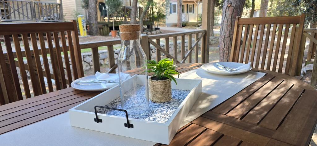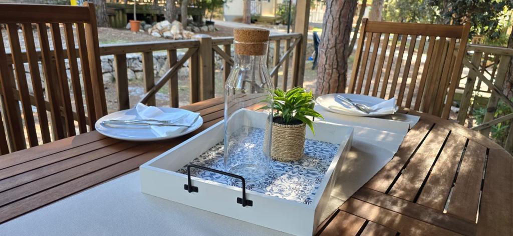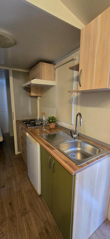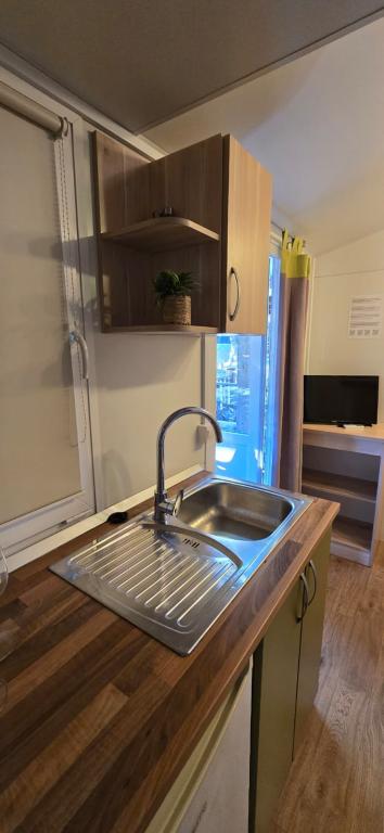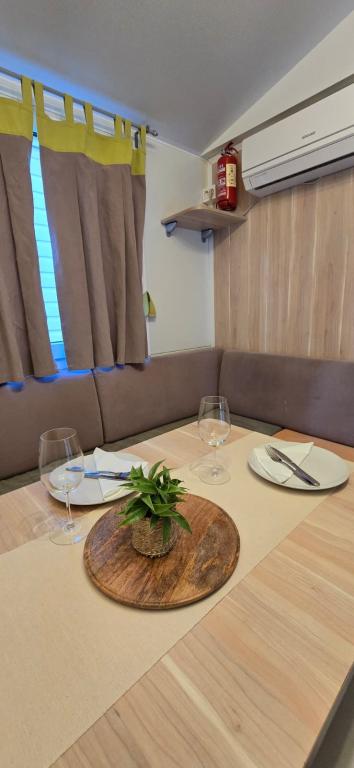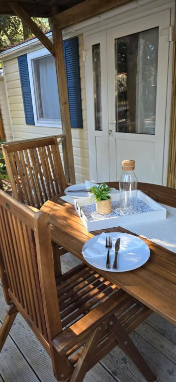 Kurtaxe ist nicht im Preis inbegriffen.Auf dem Campingplatz stehen den Gästen ein Supermarkt, ein Café, ein Restaurant, Kinderspielplätze, ein Kinderclub, ein Wellnesscenter und diverse Sportanlagen zur Verfügung. Die Rezeption ist rund um die Uhr geöffnet. Zu jedem Mobilheim gehört die Miete eines Stand-Up-Paddleboards (SUP), und im Gemeinschaftsraum können Sie bei einer Miete ein Kajak kostenlos nutzen.