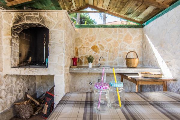 Das Haus in erster Meeresreihe in der Bucht Lučina in Pašman bietet drei Apartments für einen erholsamen Urlaub am Meer. Das erste Apartment verfügt über zwei Schlafzimmer und bietet Platz für bis zu fünf Personen. Der geräumige Innenraum sorgt für einen angenehmen Aufenthalt, und vom Balkon aus genießen Sie den Blick auf das Meer und die kleine Insel Galešnjak, auch bekannt als „Insel der Liebe“. Es gibt auch zwei Apartments mit einem Schlafzimmer, ideal für Paare, für jeweils bis zu zwei Personen. Apartment S1 bietet ebenfalls einen wunderschönen Blick auf das Meer und die kleine Insel Galešnjak, während Apartment A1 einen entspannenden Blick auf den umliegenden Pinienwald bietet. Für Gäste, die mit dem eigenen Fahrzeug anreisen, bietet das Haus einen privaten Parkplatz, der die An- und Abreise erleichtert. Wenn Sie die Umgebung vom Meer aus erkunden möchten, steht Ihnen ein Bootsanleger zur Verfügung. Der mediterrane Garten verfügt außerdem über eine überdachte Terrasse mit Tisch und Stühlen. Außerdem gibt es einen Holz- und Gasgrill, sodass Sie im Freien köstliche Mahlzeiten zubereiten können.