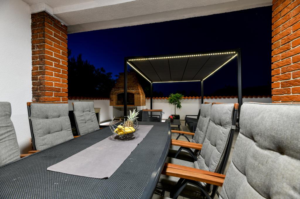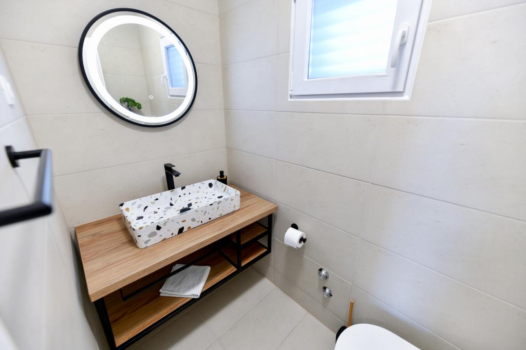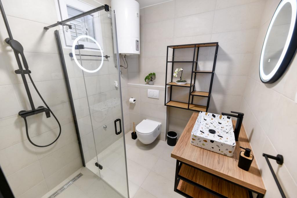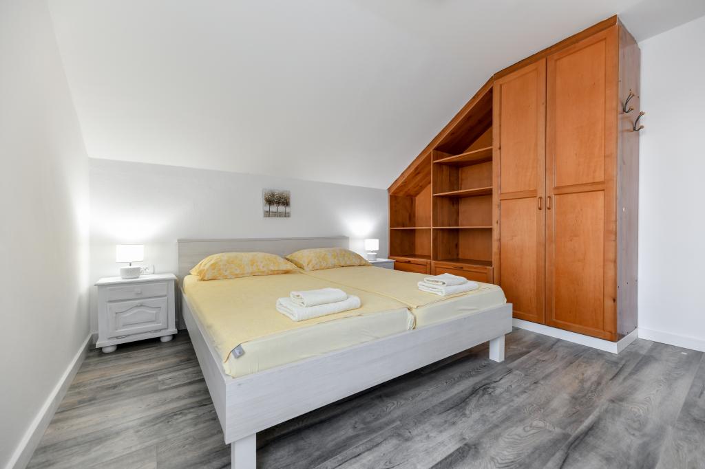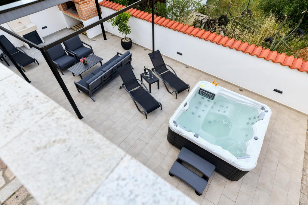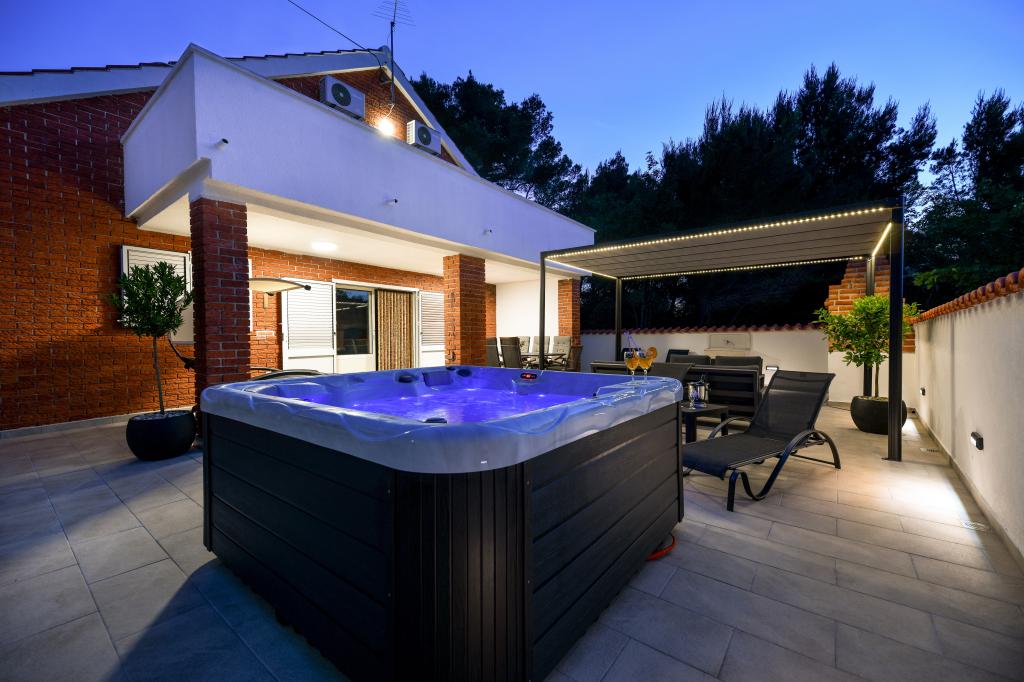 Das Haus liegt auf der Insel Pašman, in einer Oase der Ruhe, Stille und Schönheit einer typischen kleinen dalmatinischen Stadt. Drei Minuten zu Fuß zum Strand, fünf Minuten zum Laden. Die Anlage verfügt über eine große Außenterrasse, einen Grill, Liegestühle, eine Schaukel zum Ausruhen und eine Hydromassagewanne. Im Erdgeschoss gibt es ein großes Wohnzimmer mit Küche, zwei Badezimmer und drei Toiletten sowie eine Waschmaschine. Es gibt 4 Schlafzimmer im ersten Stock, zwei Zimmer haben Zugang zu einer großen Terrasse mit Blick auf das Meer, ein Doppelbett 180x200, und die anderen beiden Zimmer haben ein Doppelbett 160x200 und Blick auf den Wald. Im ersten Stock gibt es auch eine Toilette. Ein Babybett ist auf Anfrage erhältlich. Es gibt drei Parkplätze im Hof, sowie die Möglichkeit, eine Außendusche zu nutzen. Das Haus wurde im Mai 2023 komplett renoviert. Ein Aufenthalt von 10 Personen ist ebenfalls möglich. In diesem Fall ist die Unterbringung von zwei Personen in einem Studio-Apartment auf demselben Grundstück gegen Aufpreis möglich. Das Studio-Apartment verfügt über eine Küche mit allen Geräten, ein Badezimmer mit Dusche, TV, Klimaanlage und eine Terrasse mit Blick auf das Meer.