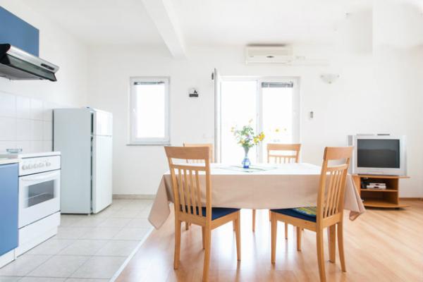 Die Wohnungen befinden sich in einem Familienhaus, nahe dem Zentrum von Petrčani. Unweit des Hauses gibt es einen Kinderspielplatz, eine Promenade und eine Bucht mit Booten. Es gibt Strände, Restaurants und Geschäfte in der Nähe. Die Wohnungen sind geräumig, mit zwei Schlafzimmern, Wohnzimmer mit Küche, Bad und Balkon.