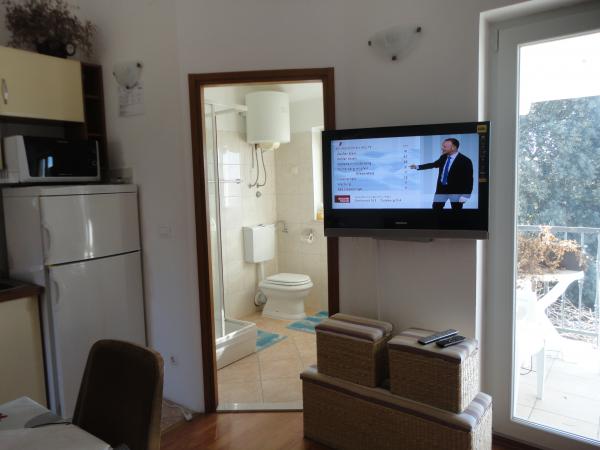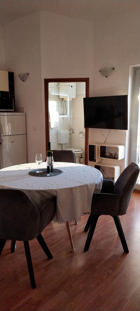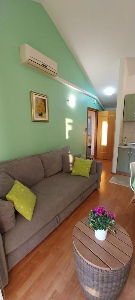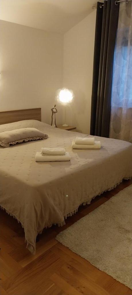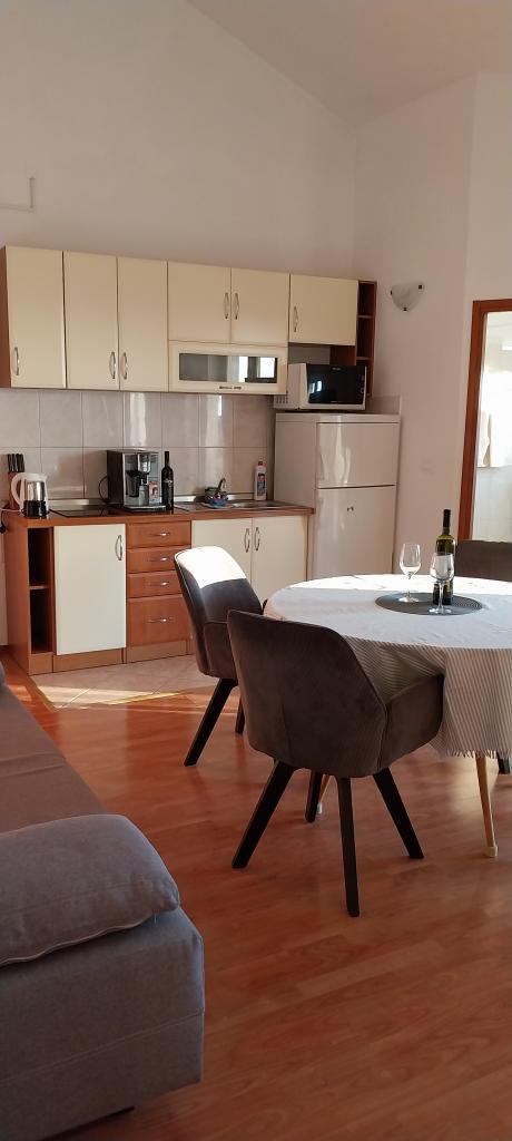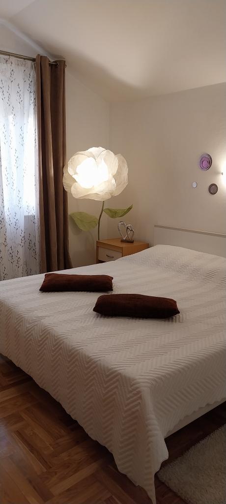 Die Wohnungen befinden sich in einem neuen Einfamilienhaus im Zentrum von Petrcan. Unterhalb des Hauses befindet sich ein schön angelegter Kinderspielplatz, Promenade und Hafen mit Booten. In der Nähe gibt es Strände, Restaurants, Geschäfte. Die Apartments verfügen über überdachte Balkone mit Blick auf das Meer und die Inseln. Sie sind komfortabel, mit zwei Schlafzimmern, Wohnzimmer mit Küche, Bad. Die Wohnungen sind klimatisiert, mit Wi-Fi-Internet, Mikrowelle, Wasserkocher, Kaffeemaschine und Besteck und Getränken ausgestattet. Sie sind mit Bettwäsche und Handtüchern ausgestattet.