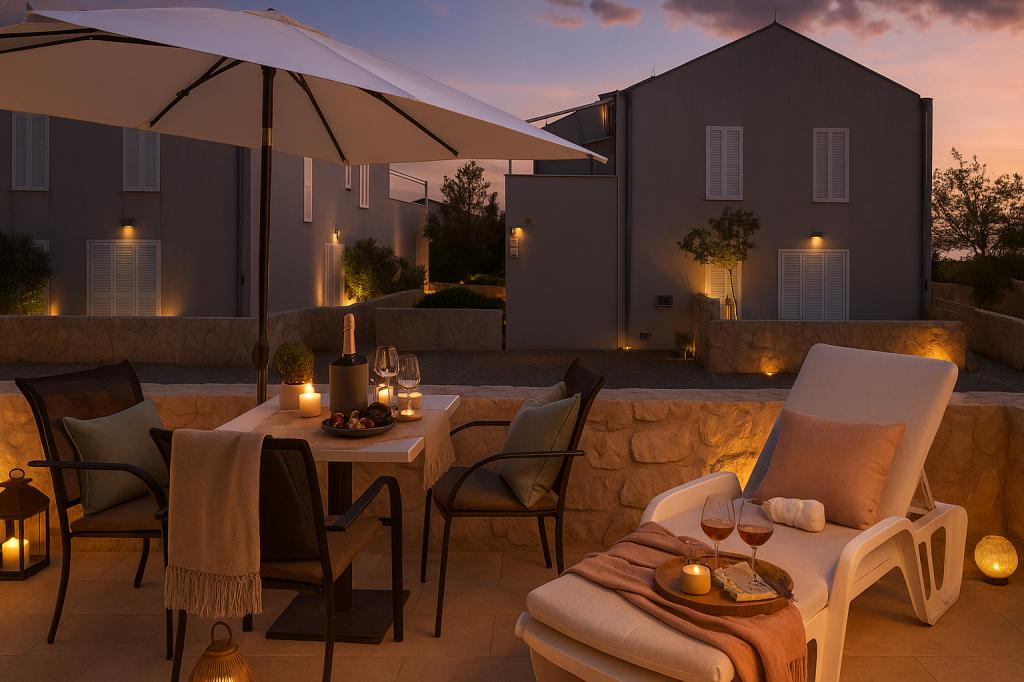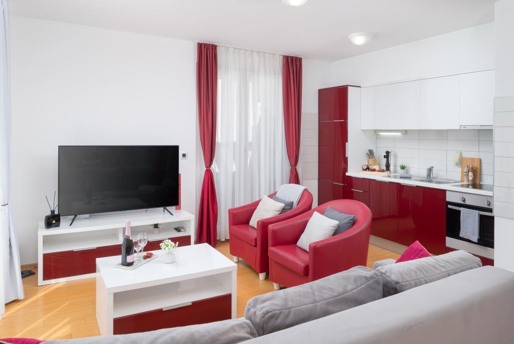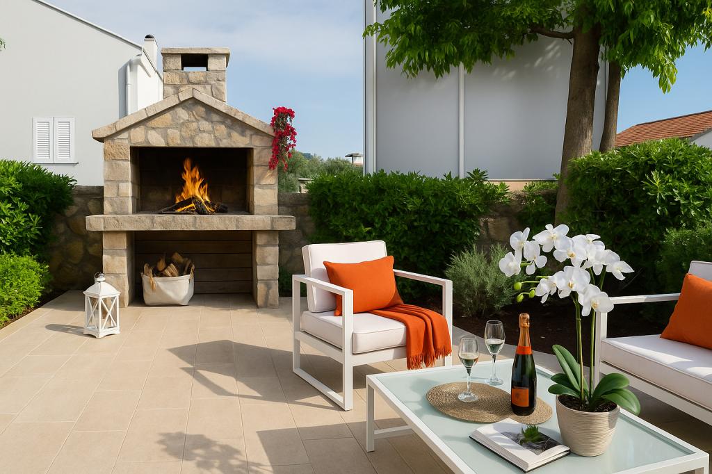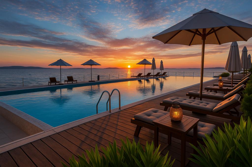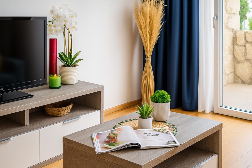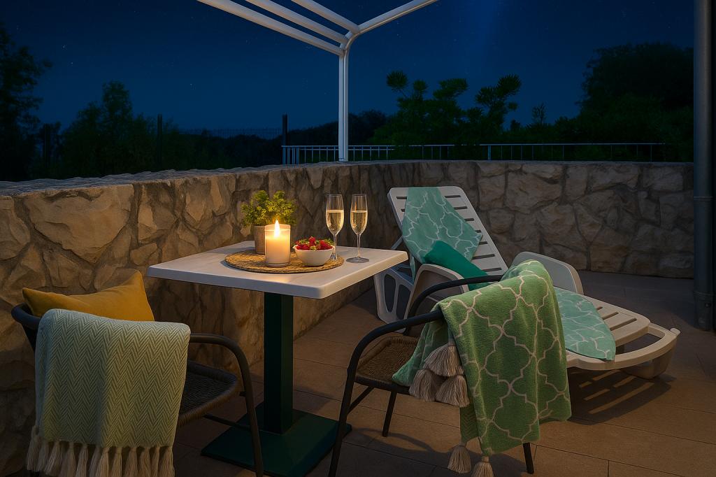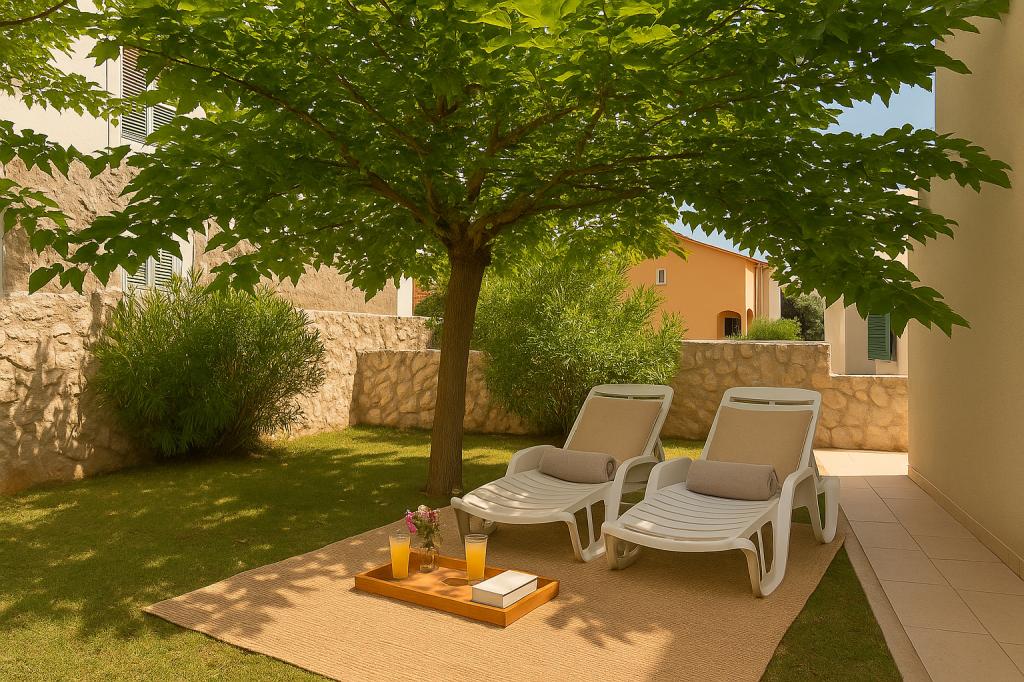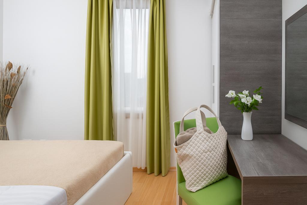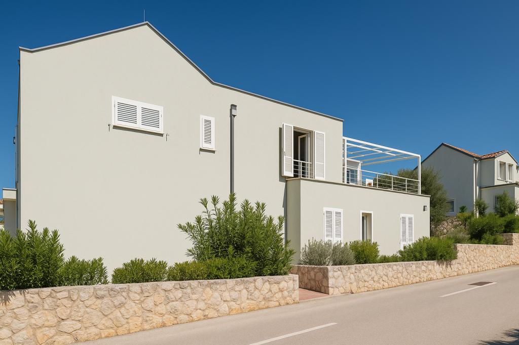 Sunny Resort Apartment mit Meerblick 1314 in Petrčane bietet die perfekte Kombination aus Komfort und erstklassiger Lage für einen erholsamen Urlaub. Gelegen im Sunny Resort-Komplex, in unmittelbarer Nähe der Hotels Falkensteiner Diadora und Iadera, befindet sich dieses 49 m² große Ein-Zimmer-Apartment im zweiten Stock mit privatem Eingang und bietet Meerblick. Apartmentbeschreibung - Kapazität: Bis zu 4 Personen (1 Schlafzimmer mit Doppelbett + Schlafsofa im Wohnzimmer) - Größe: 49 m² - Lage: Zweiter Stock, dritte Reihe vom Meer, privater Eingang - Aussicht: Balkon und Terrasse mit Meerblick - Ausstattung: Klimaanlage, voll ausgestattete Küche, WLAN, Flachbildfernseher, Netflix