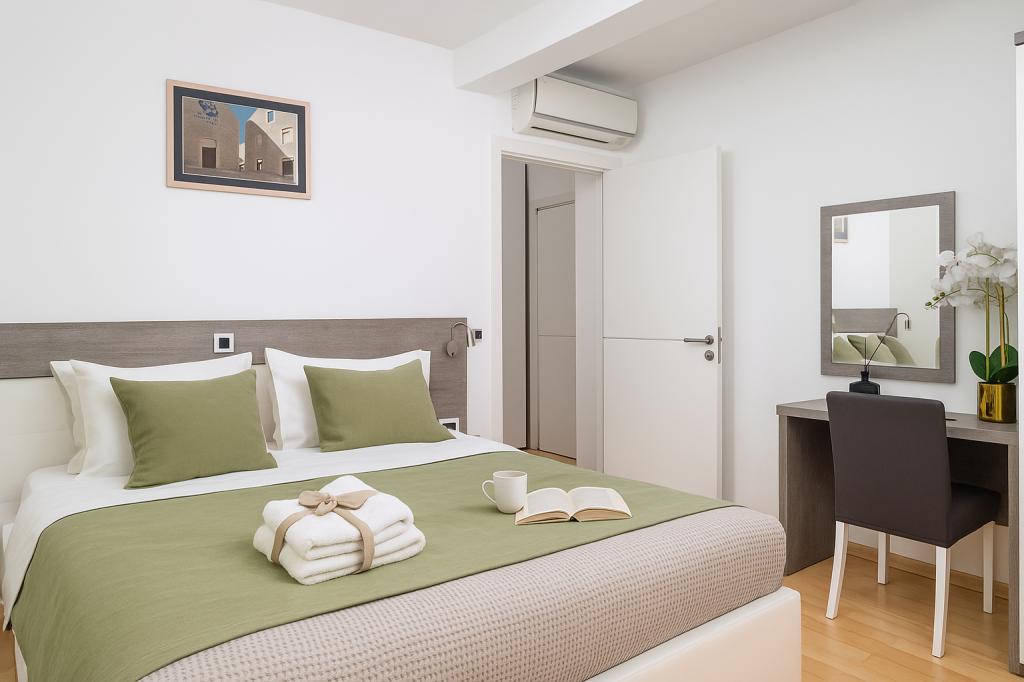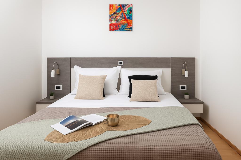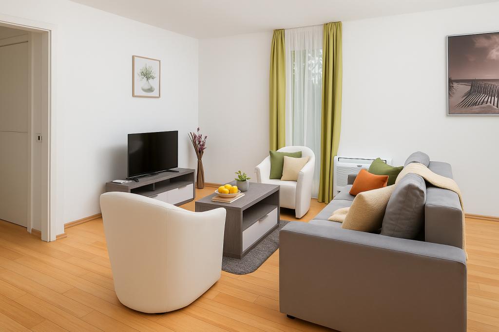 Mehr lesen UnterkunftseinheitenZahlungs- und Reservierungsbedingungen Anzahlung: Zur Bestätigung der Reservierung ist eine Anzahlung von 30 % des Gesamtpreises erforderlich. Restbetrag: Die verbleibenden 70 % sind spätestens 7 Tage vor Anreise oder bar bei Ankunft zu zahlen, je nach vorheriger Vereinbarung. Zahlungsmethode: Die Zahlungen erfolgen per Banküberweisung auf das Konto des Vermieters; die Kontodaten werden bei der Reservierung mitgeteilt. Check-in und Check-out - Check-in: von 15:00 bis 22:00 Uhr. - Check-out: bis 10:00 Uhr am Abreisetag. - Bitte teilen Sie uns Ihre genaue Ankunftszeit mindestens 24 Stunden im Voraus mit. ️ Kaution Bei der Ankunft ist eine Kaution von 200 € als Sicherheit für eventuelle Schäden zu hinterlegen. Die Kaution wird bei der Abreise nach Überprüfung der Wohnung vollständig zurückerstattet, sofern keine Schäden festgestellt werden.