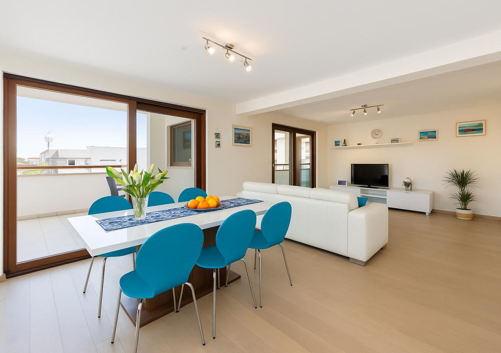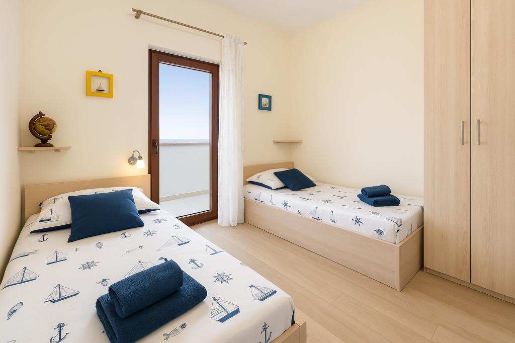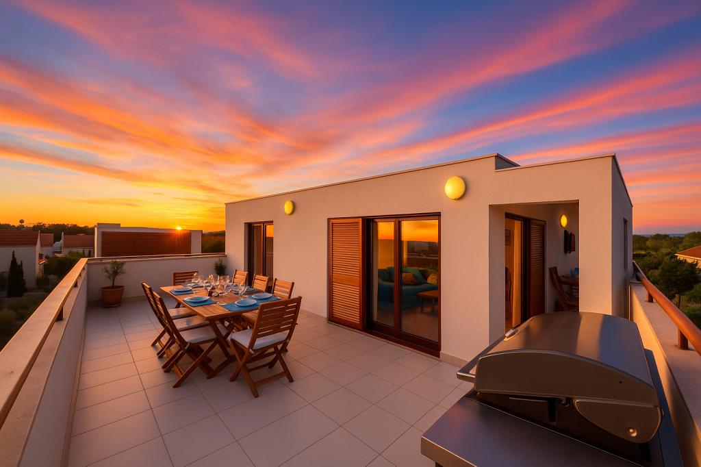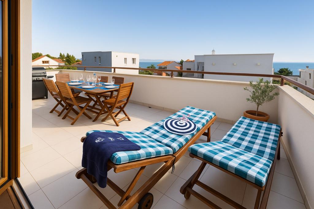 Das Aquamarine Deluxe Penthouse Apartment befindet sich in Petrčane, nur 150 m vom Strand Pineta und 250 m vom Strand Punta Radman entfernt. Es bietet eine großzügige Terrasse mit teilweisem Meerblick, einen Grill, kostenloses WLAN und einen privaten Parkplatz. Die Unterkunft verfügt über 3 Schlafzimmer, ein modernes Bad, ein Wohnzimmer mit Sofa und Flachbild-Sat-TV sowie eine voll ausgestattete Küche mit Essbereich, Bettwäsche und Handtüchern. Nur 200 m zur Bushaltestelle Petrčane und 23 km zum Flughafen Zadar. Flughafentransfer ist gegen Aufpreis möglich. Ideal für Familien oder Gruppen bis 6 Personen, die stilvollen Komfort am Meer suchen.