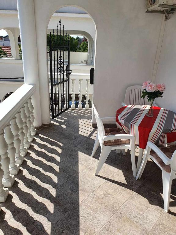 Die Apartments PAVE befinden sich in einem neuen und modernen Haus. Anwesen mit 2 klimatisierten Wohnungen im ersten Stock. Beide Wohnungen sind komplett ausgestattet und möbliert. Jedes Apartment verfügt über eine überdachte Terrasse, ein Wohnzimmer mit Küche und Schlafsofa, ein Badezimmer, ein Schlafzimmer und eine Außendusche. Die Apartments befinden sich im Zentrum von Pirovac, wenige Min. Gehen Sie zum Hauptstrand von Lolić, in einer ruhigen Lage abseits von Verkehr und Lärm. Da es am Strand viel Schatten gibt, ist er ideal für Familien mit kleinen Kindern. Im Umkreis von 100 m der Wohnung gibt es ein Geschäft, einen Markt, einen Fischmarkt, ein Postamt, ein Restaurant, einen Geldautomaten, eine Klinik, eine Apotheke, Sportplätze (Fußball, Basketball) und weitere Einrichtungen für Kinder. Am Ende der Bucht von Pirovac gibt es Heilschlamm, der vor allem zur Behandlung von rheumatischen und anderen Beschwerden sowie für kosmetische Zwecke wirksam ist. In der Nähe von Pirovac gibt es zwei Nationalparks – den Nationalpark Kornati, den Nationalpark Krka und das Naturschutzgebiet Vrana-See.