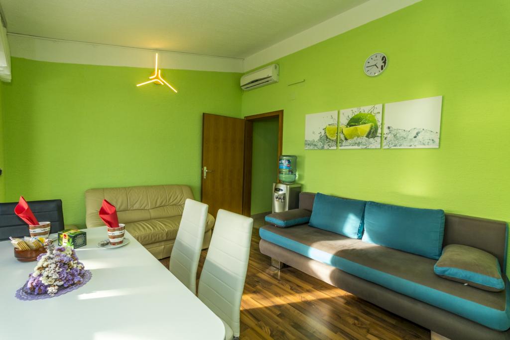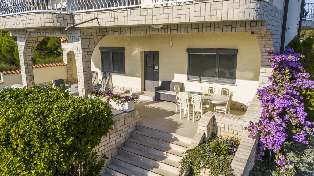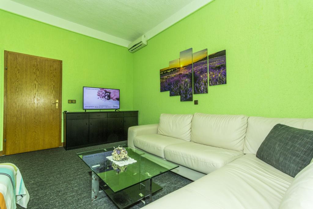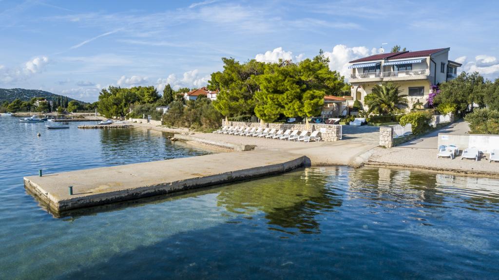 Villa Punta Royal befindet sich direkt neben dem Meer in einer ruhigen Bucht und verfügt über einen eigenen Kieselstrand. Das Meer ist flach und wird tiefer, wenn es geht weg von der Küste, die perfekt für kleine Kinder ist. Vor der Villa ist ein mediterraner Garten, wo Sie den Charme von Dalmatien und der Adria genießen können. Alles ist an einem Ort, die Sie nicht mit der Speicherung Ihre Sachen zu kümmern, zum Strand zu gehen, weil Sie Ihre Wohnung nur 15 Meter vom Strand entfernt ist, die vor der Villa ist. WLAN ist kostenlos und steht im gesamten Villa und den ganzen Strand. Parkplatz befindet sich neben der Villa und ist kostenlos für alle unsere Gäste. Liegestühle und Sonnenschirme im mediterranen Garten und am Strand sind für alle Gäste zur Verfügung gestellt und sind kostenlos. Die Apartments sind modern und komplett für Familien ausgestattet. Wir sind in der Mitte der Adriaküste gelegen, so dass alle lokalen Sehenswürdigkeiten von Dalmatien nah an uns. Genießen Sie Ihren Urlaub, während für Sie in Villa Punta Royal, immer jemand 24 Stunden am Tag.