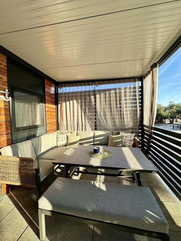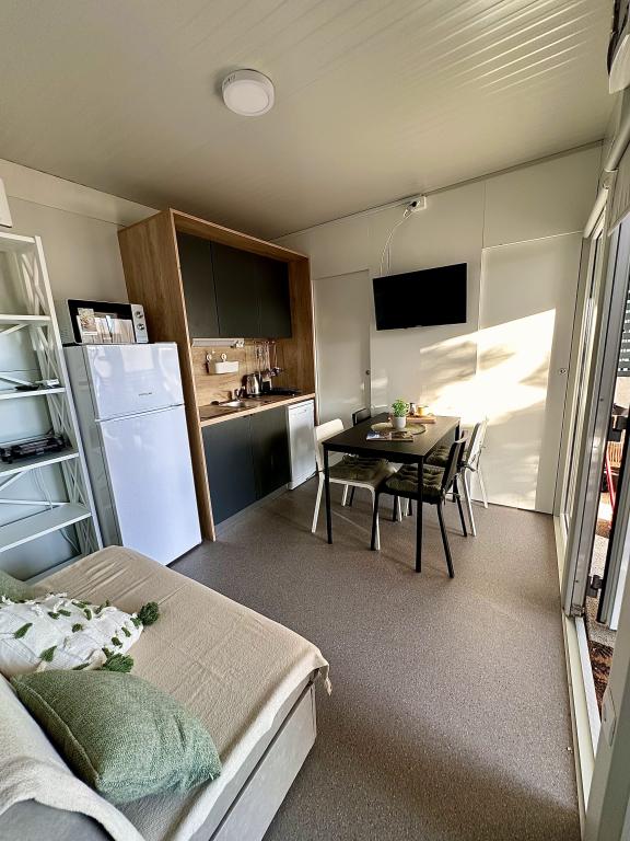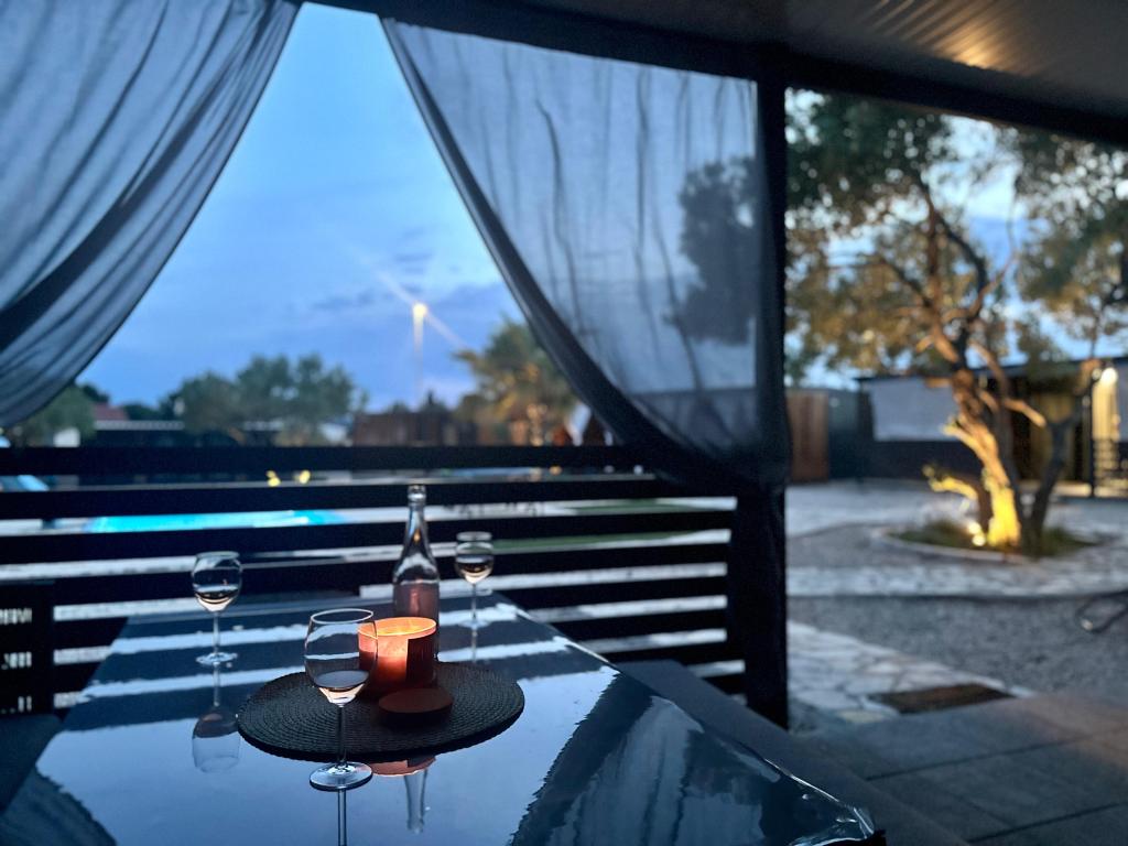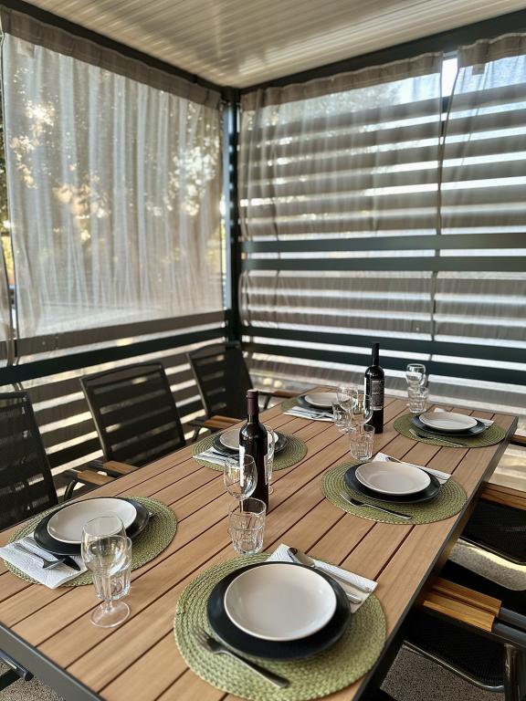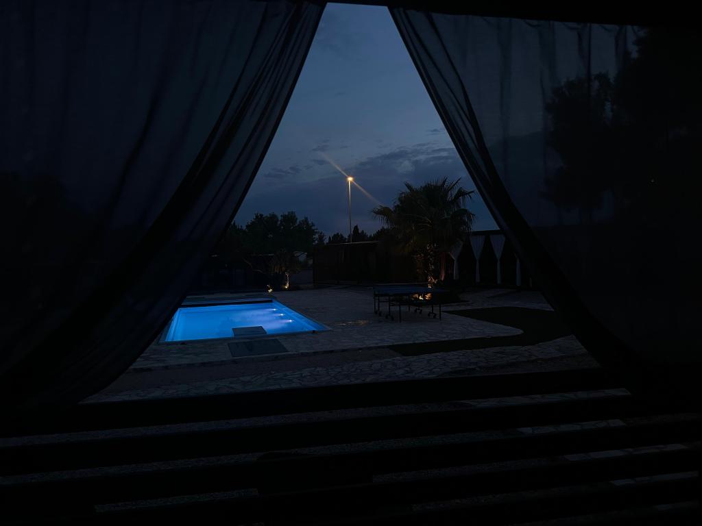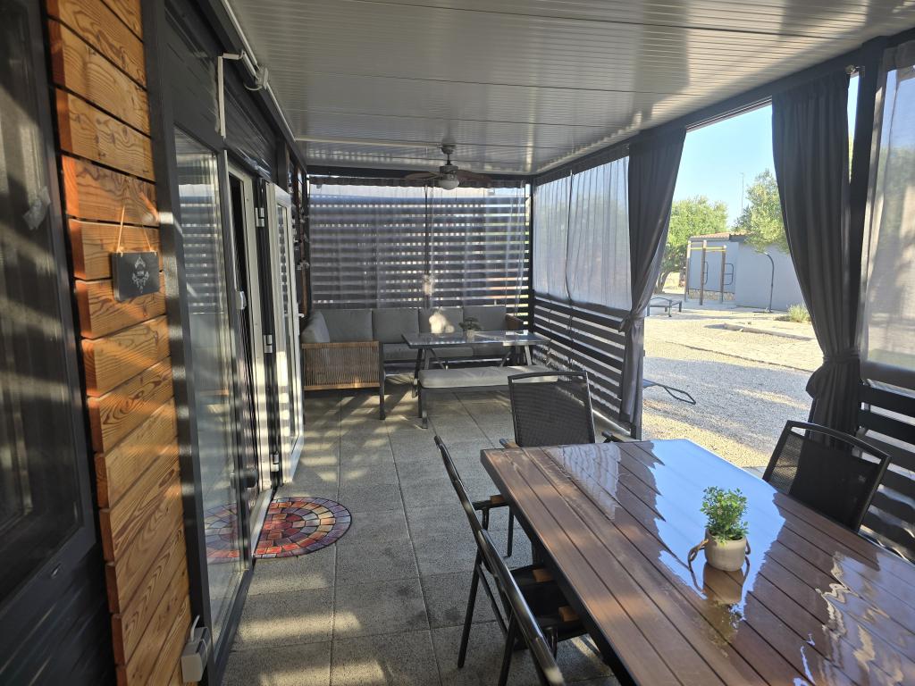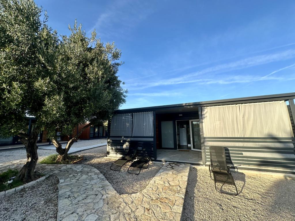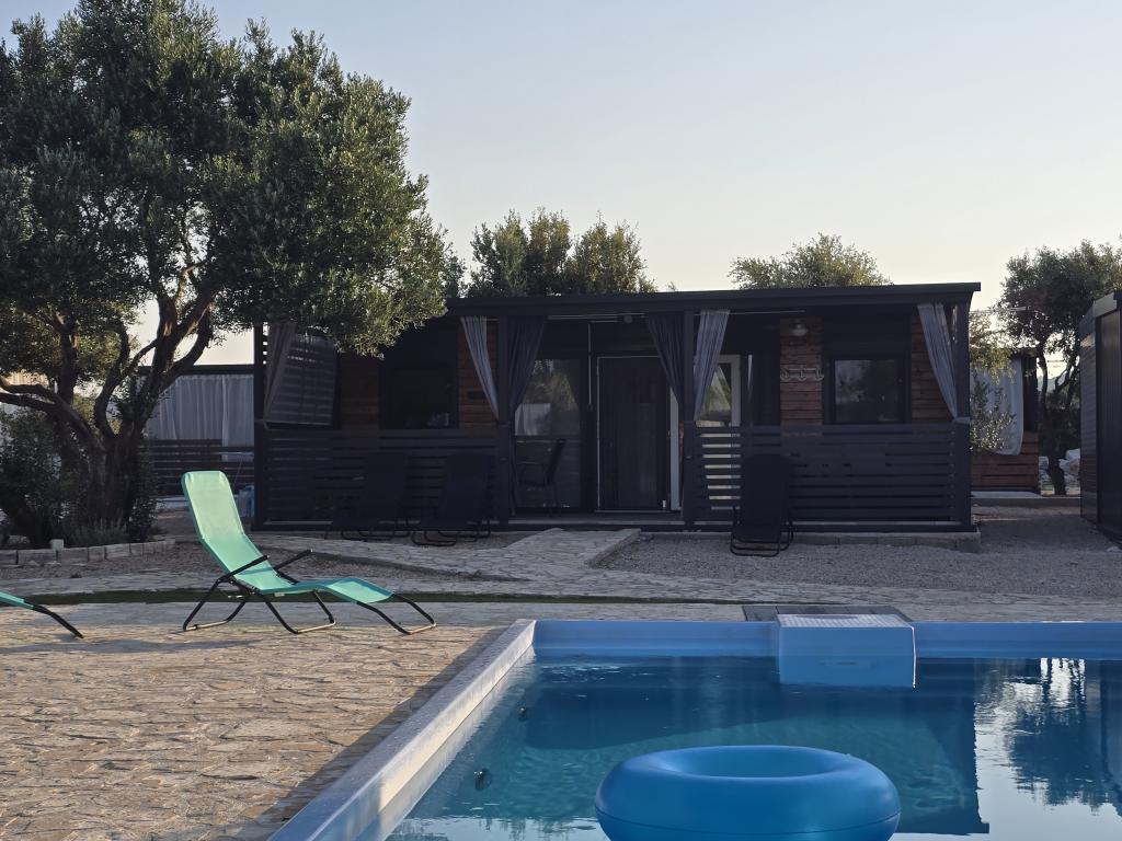 Mobile Home Maslina – Ihre Oase der Ruhe am Meer. Willkommen im Mobile Home Maslina, einem modern eingerichteten Mobilheim in einem ruhigen Teil von Pirovac, nur 200 m vom Strand entfernt. Das Haus bietet Platz für bis zu fünf Personen und verfügt über zwei Schlafzimmer mit insgesamt vier Betten, ein Wohnzimmer mit Schlafsofa, eine ausgestattete Küche und ein Badezimmer. Genießen Sie die große überdachte Terrasse mit Blick auf den Pool – perfekt für den Morgenkaffee oder den entspannten Abend. Gästen steht ein Parkplatz zur Verfügung. Das Mobile Home Maslina ist ideal für einen Familienurlaub – Ruhe, Natur und die Nähe zum Meer. Erleben Sie die Gastfreundschaft Dalmatiens und buchen Sie noch heute Ihren Urlaub!