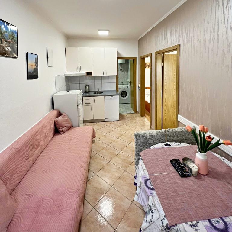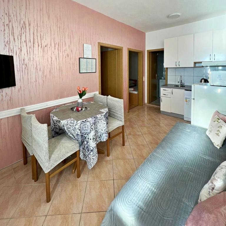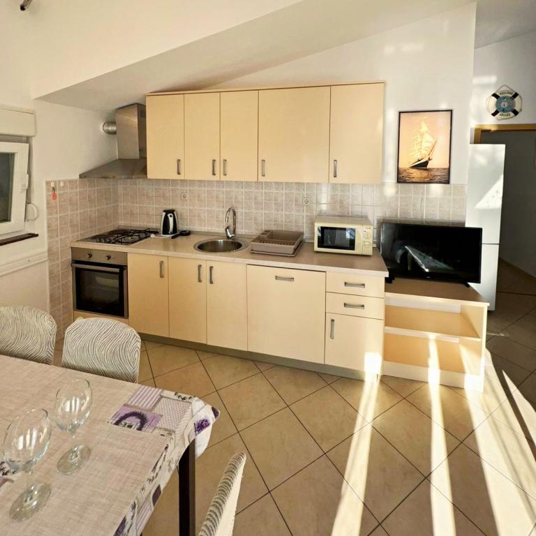 Kurtaxe ist im Preis inbegriffen.Sauberes, geräumiges und gut ausgestattetes Apartment mit wunderschönem Meerblick. Das Apartment liegt in der Nähe des Strandes und des Lebensmittelladens. Die Besitzer sind sehr nett. Ich empfehle es jedem, der einen ruhigen, aber aktiven Urlaub verbringen möchte!