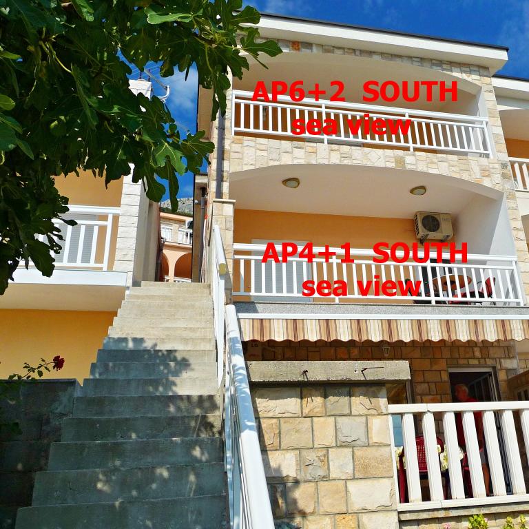 Wir haben drei Wohnungen: >> WOHNUNG A6+2 im zweiten Stock – 3 x Schlafzimmer, 1 x Wohnzimmer und Küche mit Esszimmer, 1 x Badezimmer mit Toilette, 1 x Toilette, großer Balkon mit wunderschönem Meerblick!! Klimaanlage, Waschmaschine, Geschirrspüler, Mikrowelle, WLAN-Internet. >> WOHNUNG A4+1 im ersten Stock – 2 x Schlafzimmer, 1 x Wohnzimmer und Küche mit Esszimmer, 1 x Badezimmer mit Toilette, großer Balkon mit wunderschönem Meerblick!! Klimaanlage, Waschmaschine, Geschirrspüler, Mikrowelle, WLAN-Internet. >> WOHNUNG A4+1 im ersten Stock – 2 x Schlafzimmer, 1 x Wohnzimmer und Küche mit Esszimmer, 1 x Badezimmer mit Toilette, Terrasse ohne Meerblick. Klimaanlage, Waschmaschine, Geschirrspüler, Mikrowelle, WLAN-Internet.